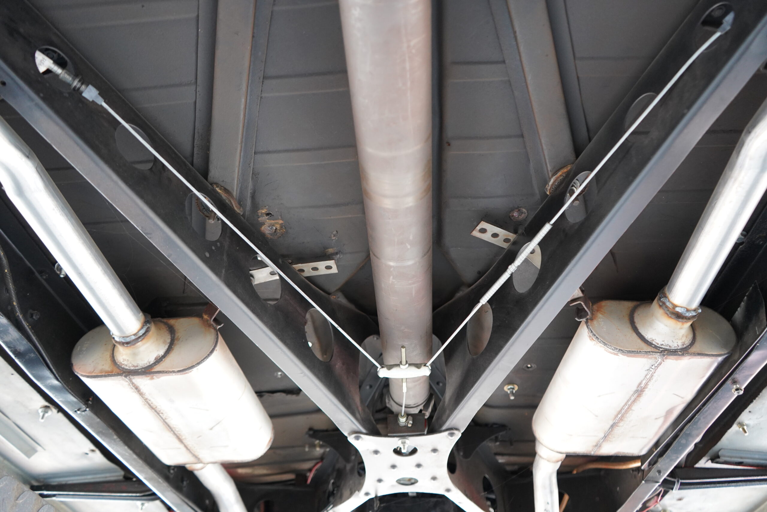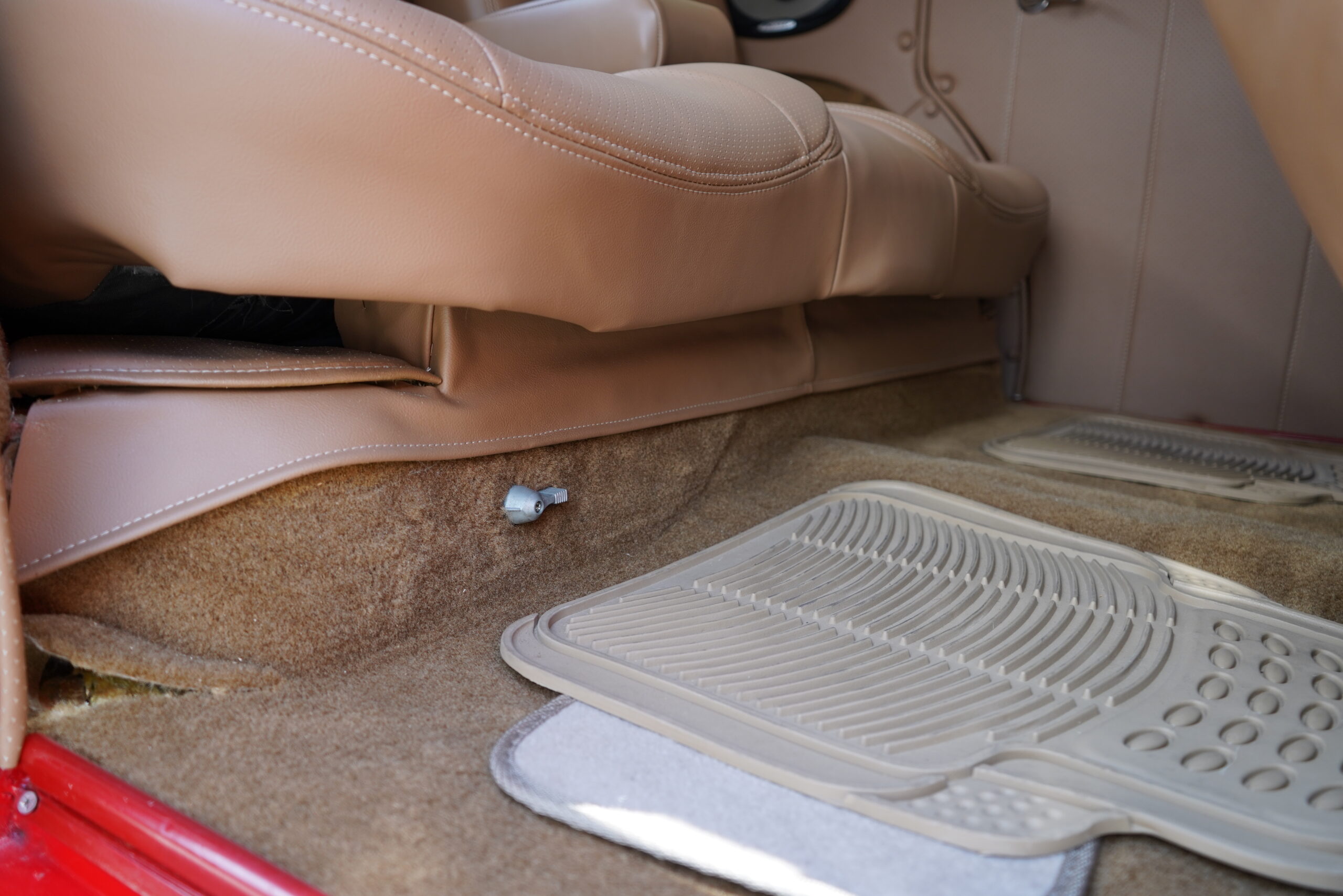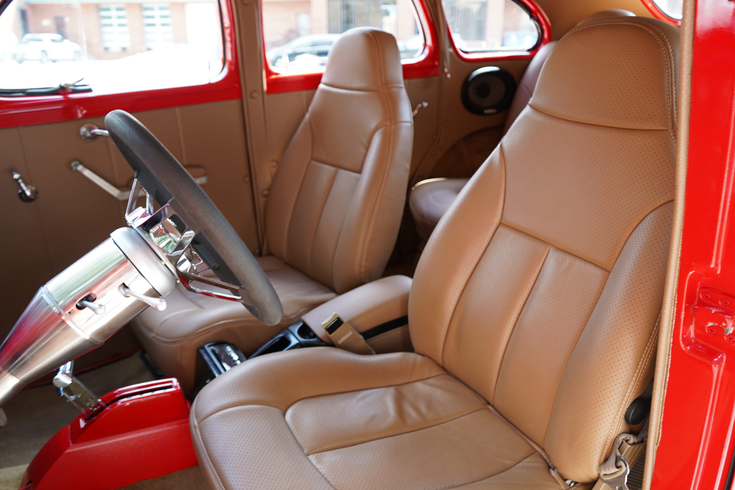 Step inside and enjoy plush tan leather bucket seats and a custom center console with a CD player. The B&M ratchet-style Z shifter adds a sporty touch, enhancing the driving experience.