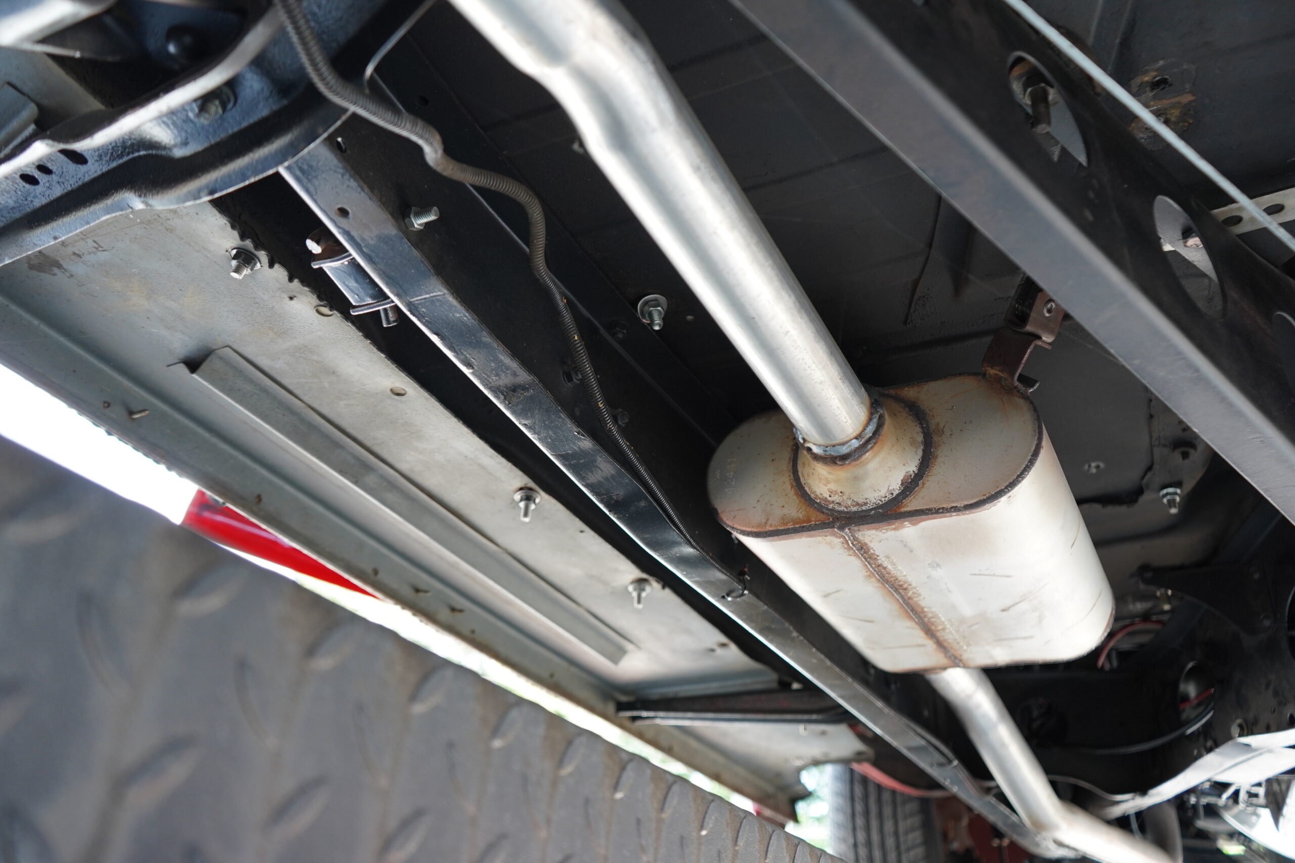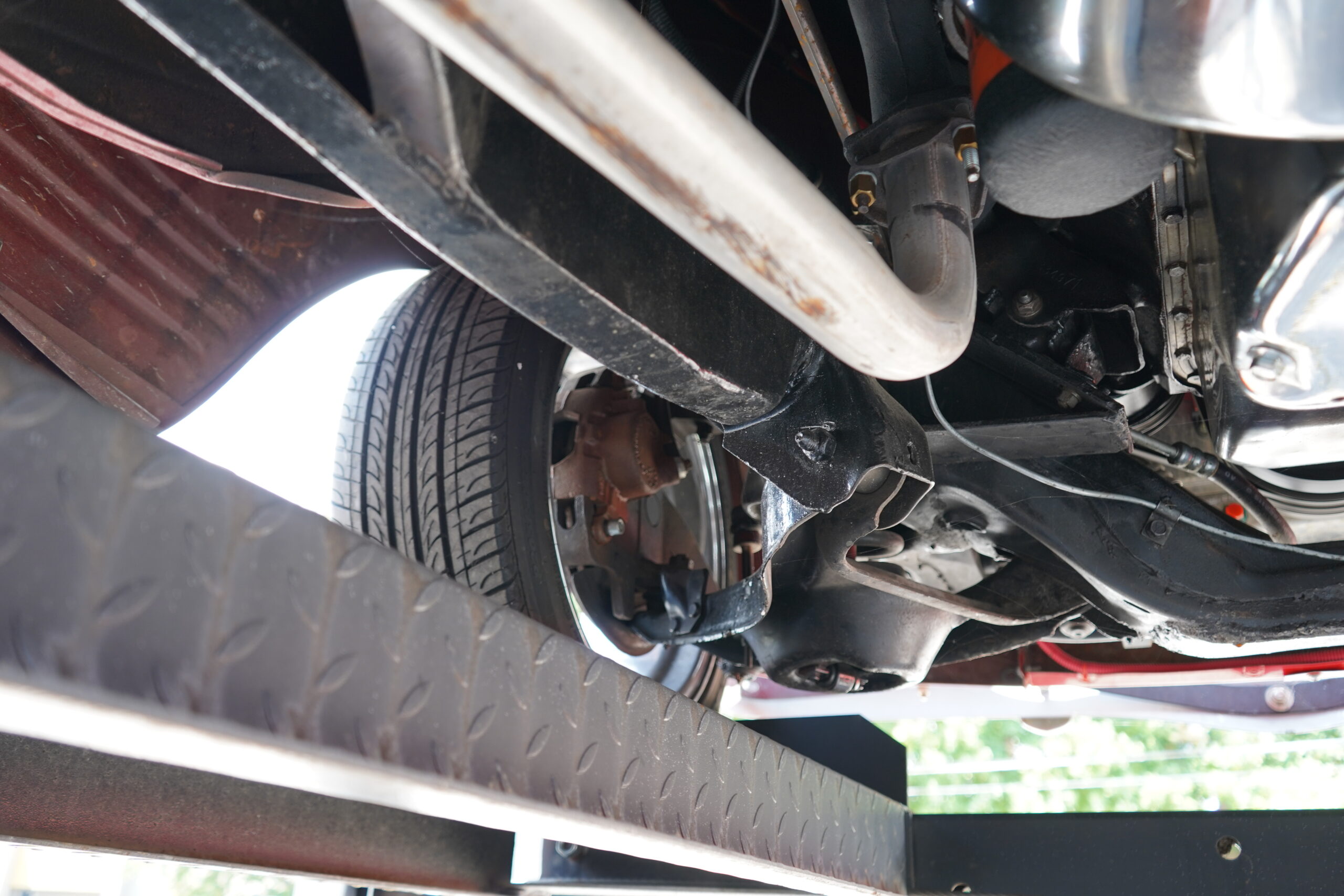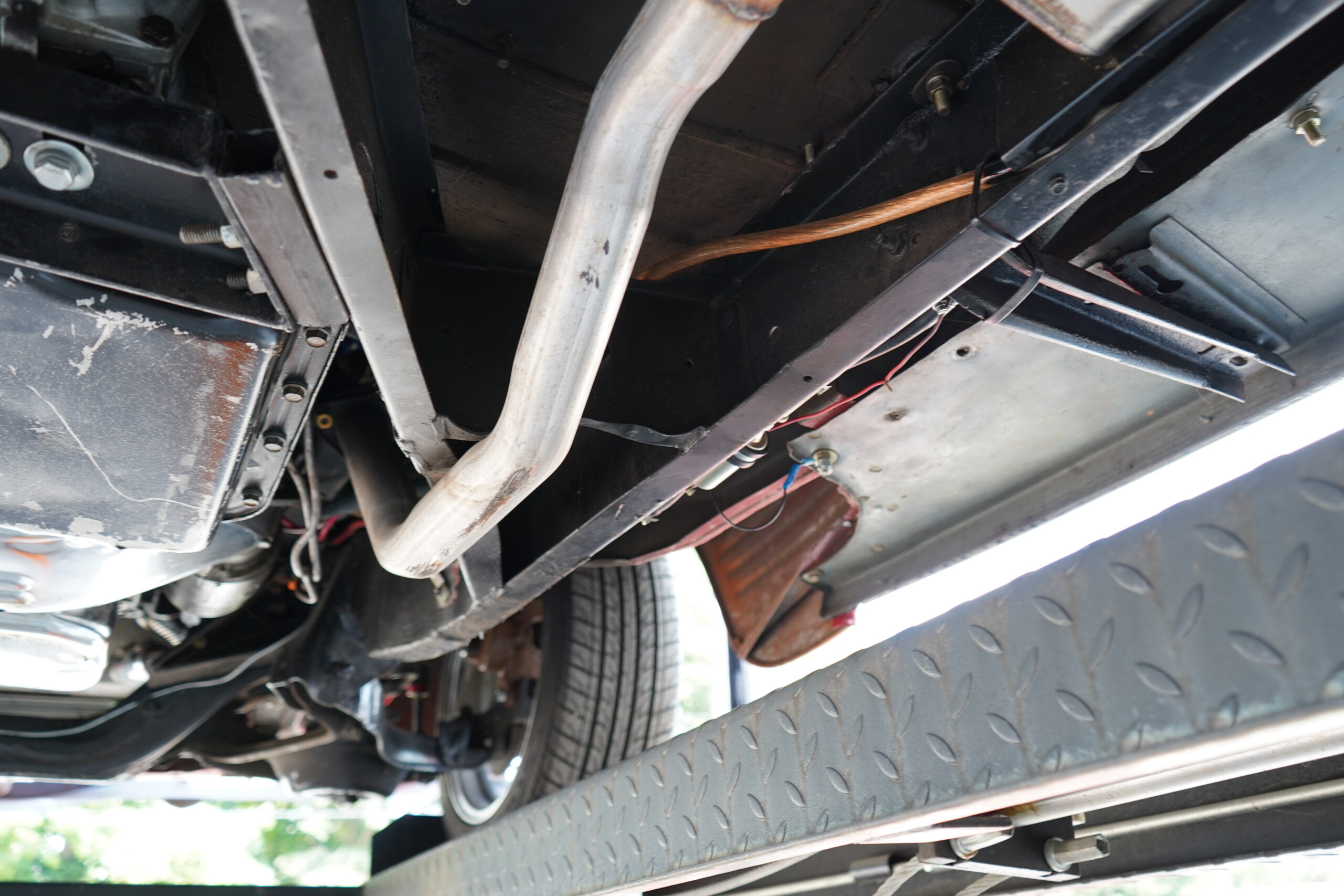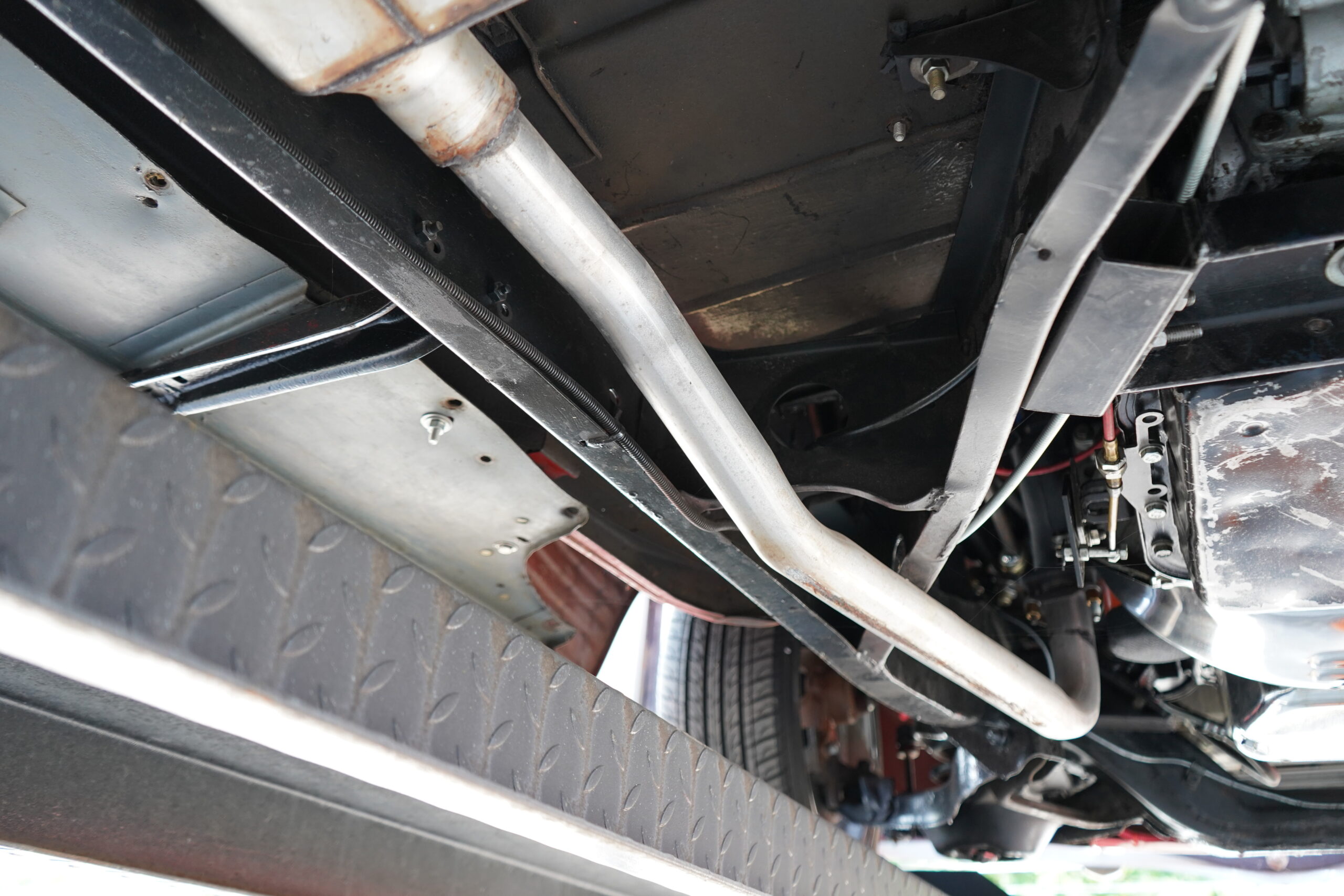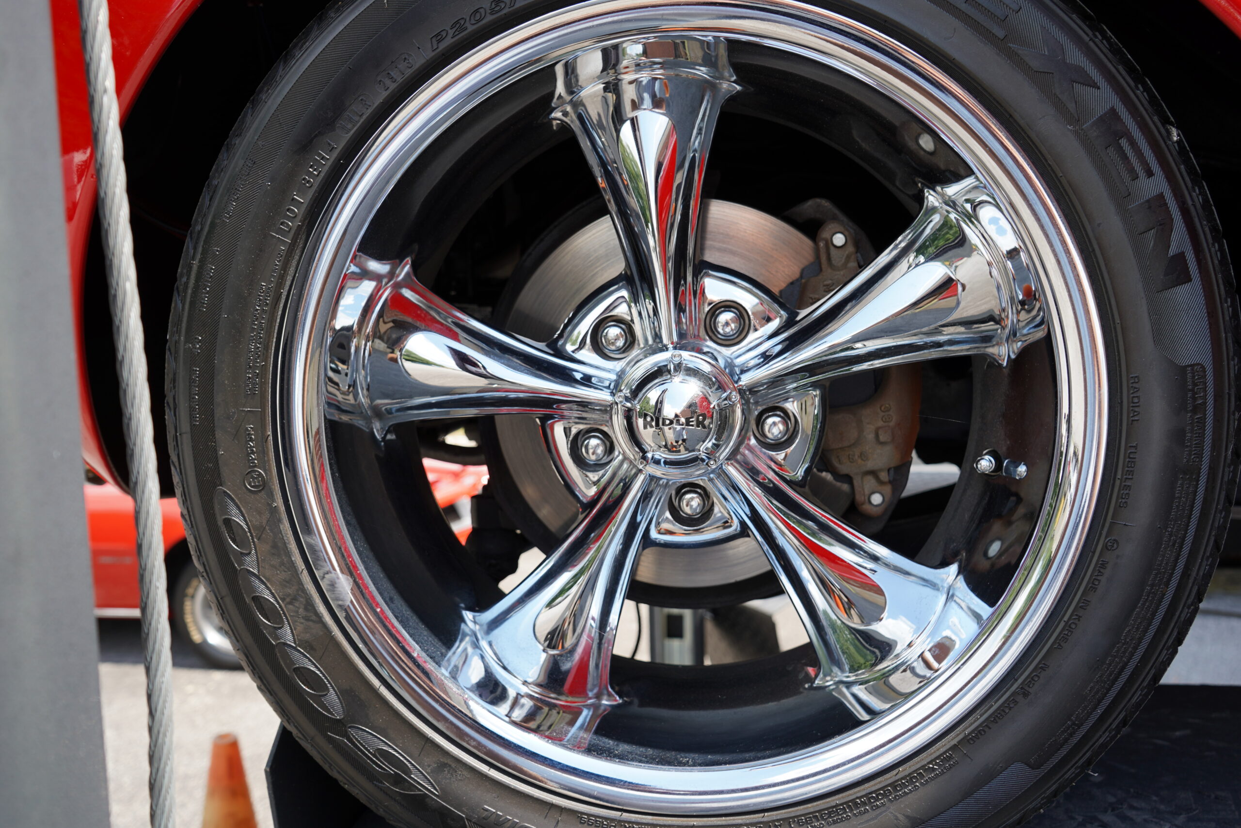 This Dodge rides on custom 17-inch Ridler chrome wheels wrapped in Nexen N5000 tires, offering both style and stability. The braking system includes disc brakes up front and drum brakes at the rear, providing excellent stopping power.