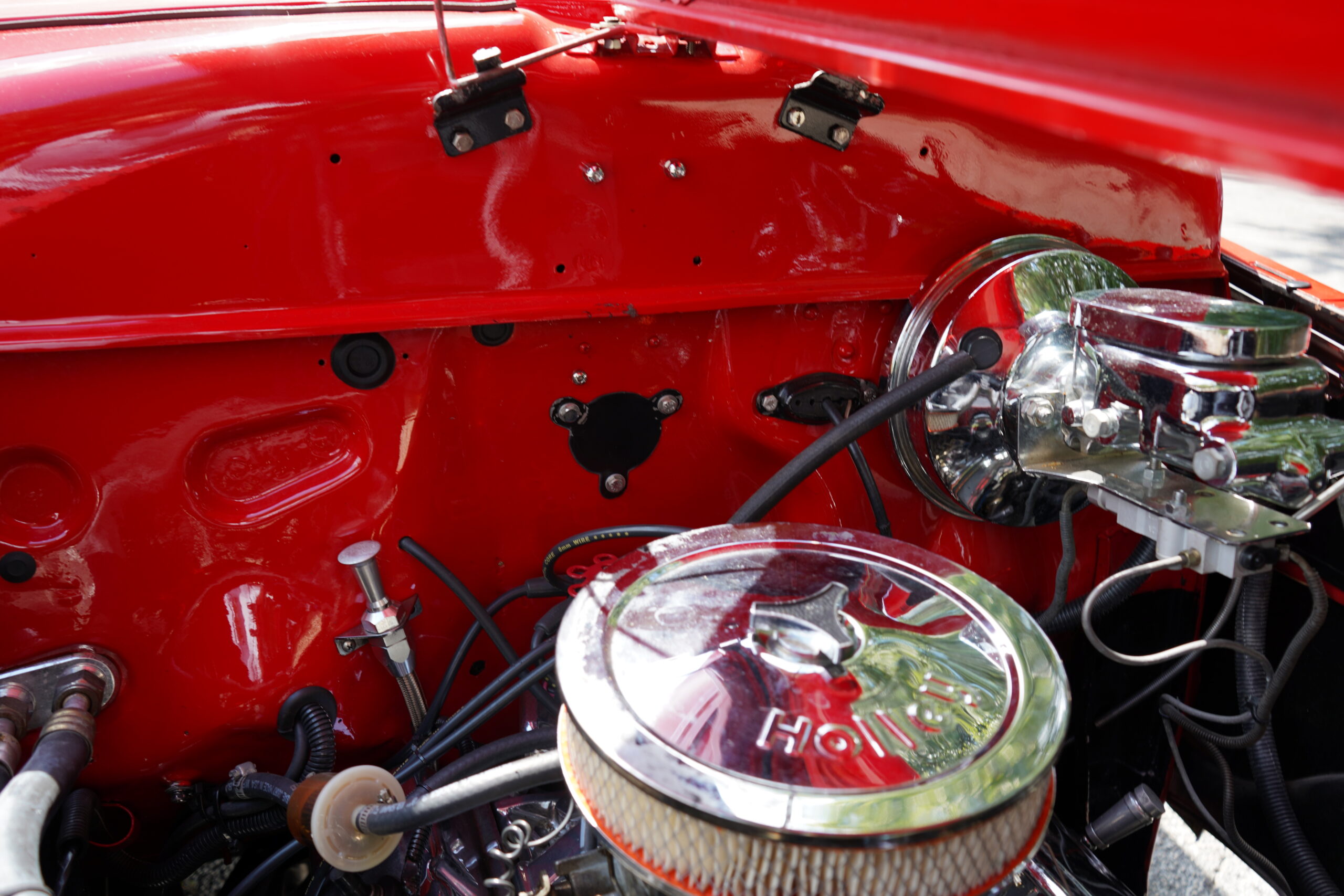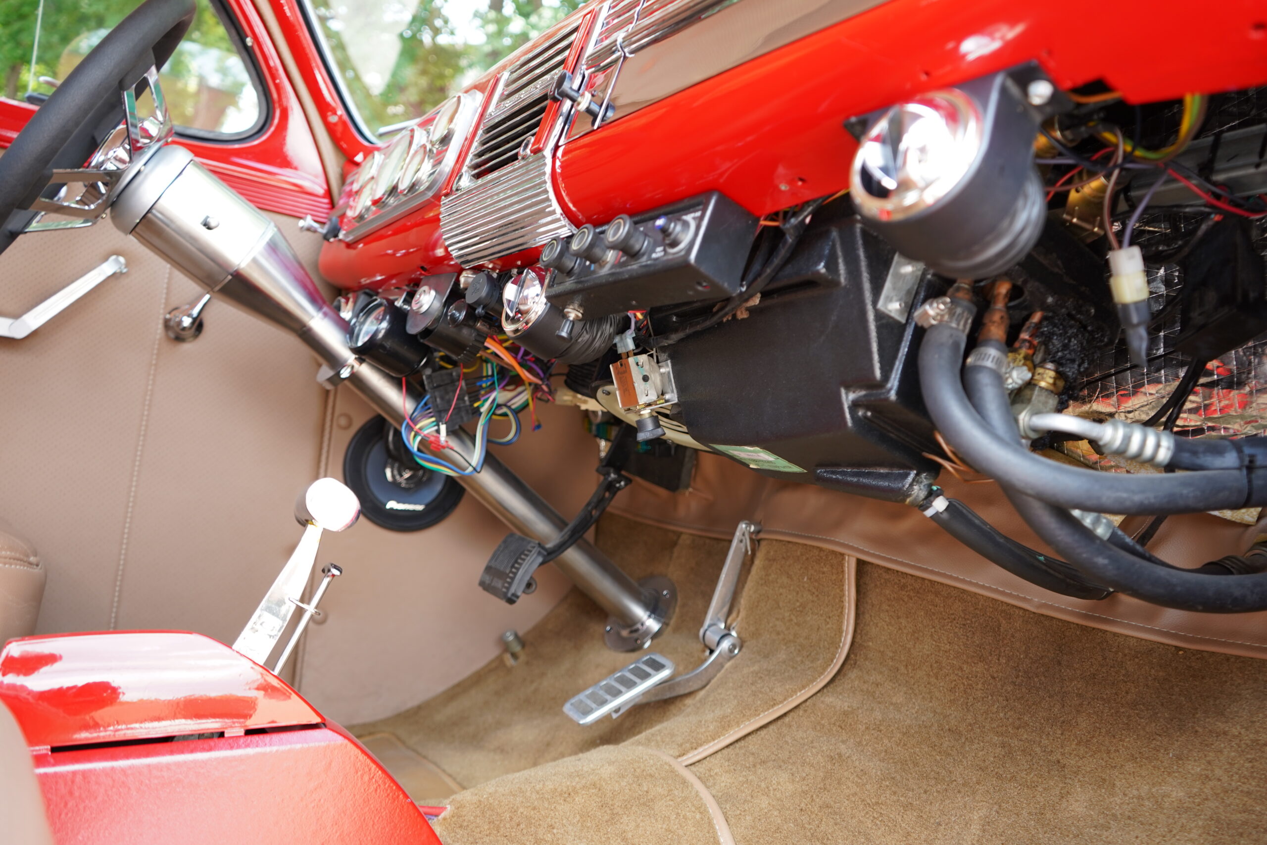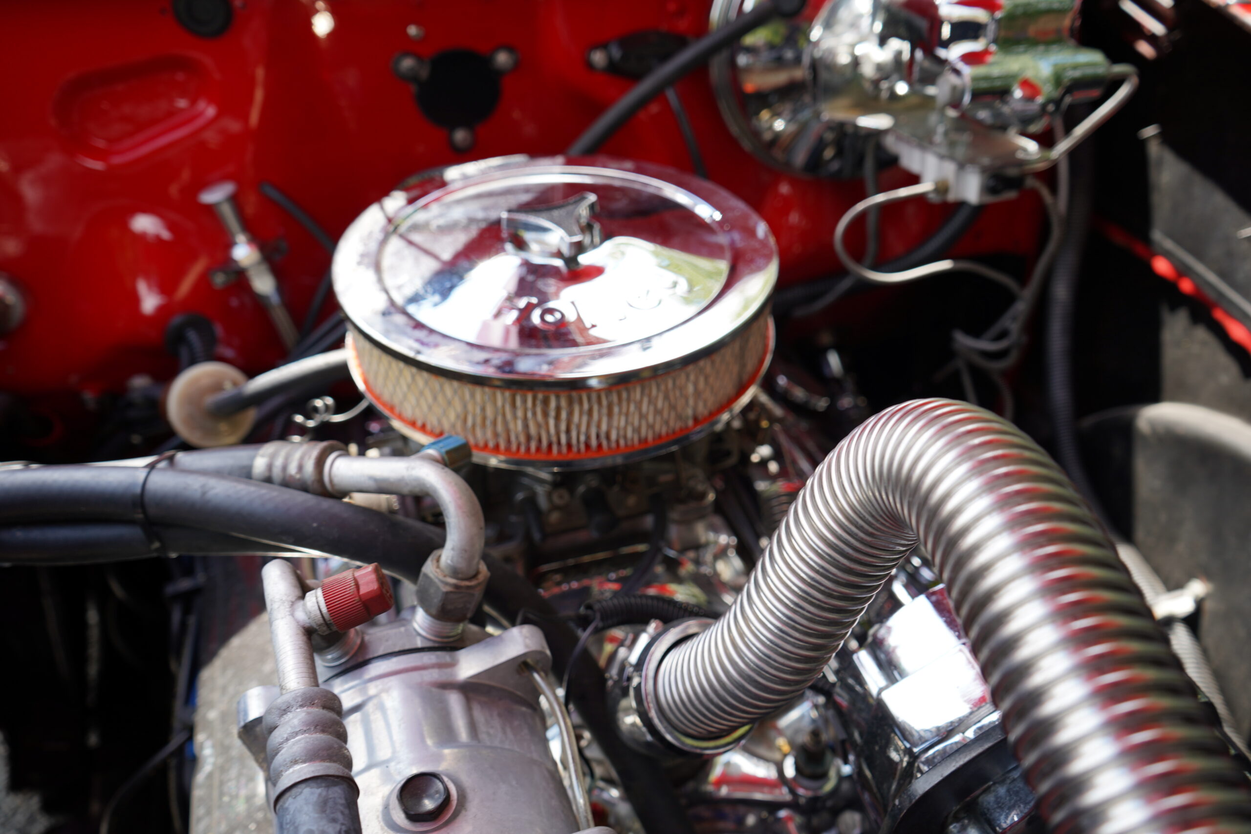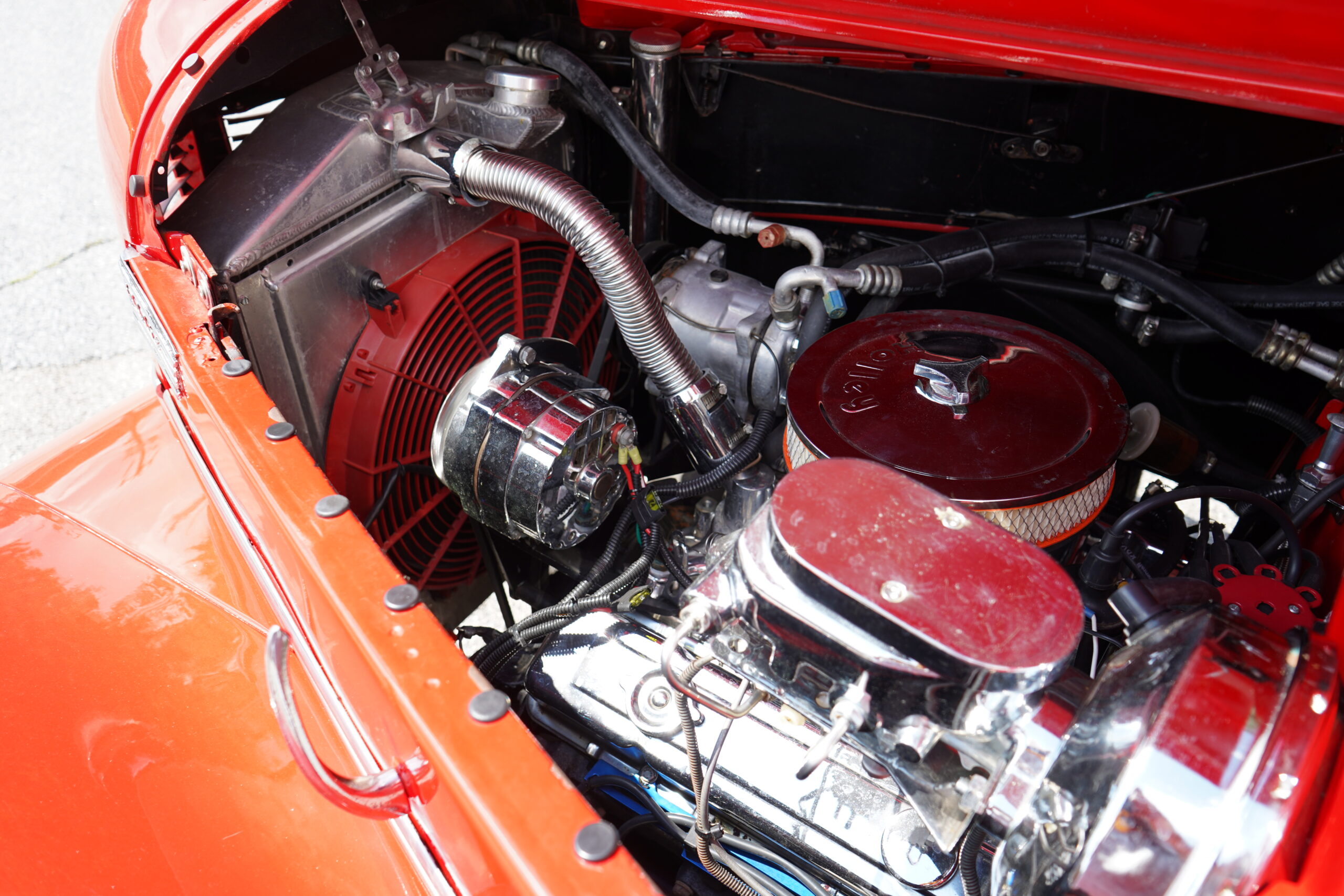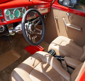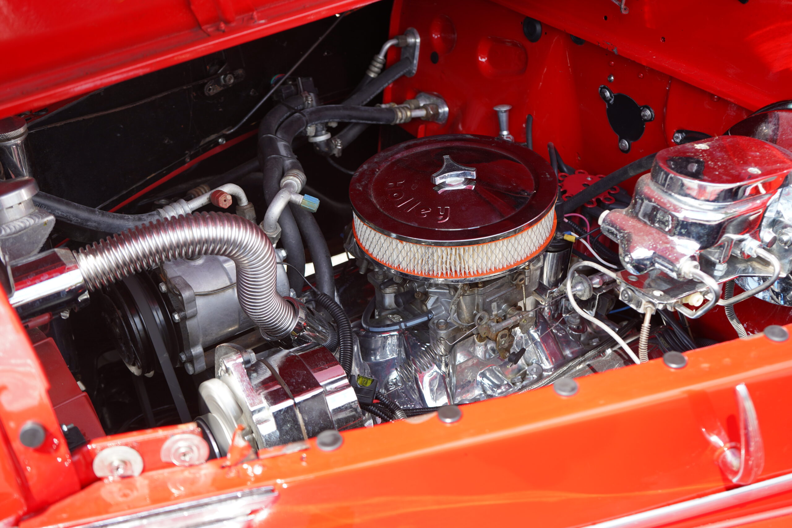 Powering this RestoMod is a strong 350ci Chevrolet V8 paired with a smooth 700R4 automatic transmission. The engine bay is dressed with a chrome dress-up kit, ensuring it looks as good as it performs. Additional upgrades include modern air conditioning with R134a, delivering comfort alongside classic hot rod performance.