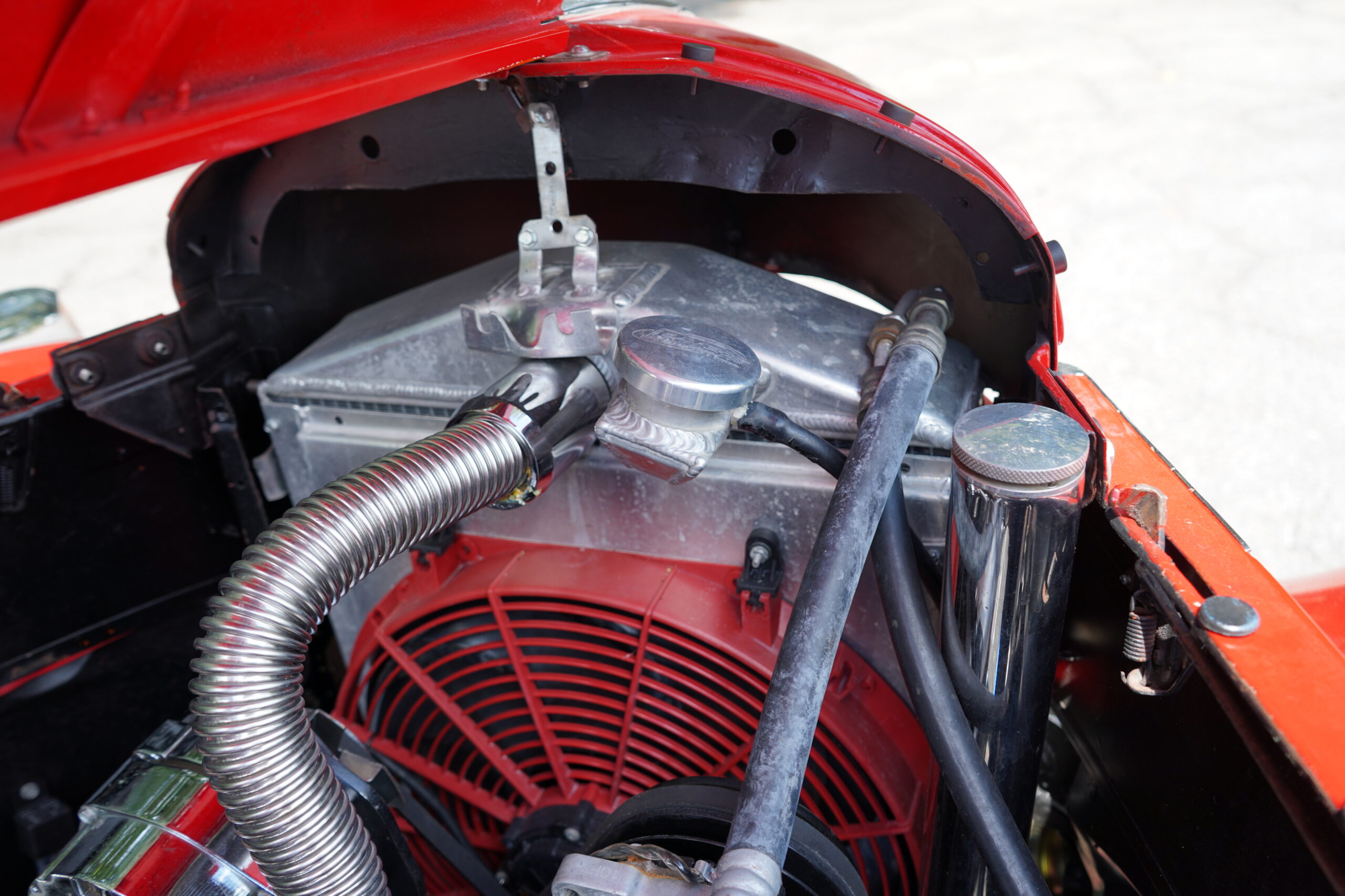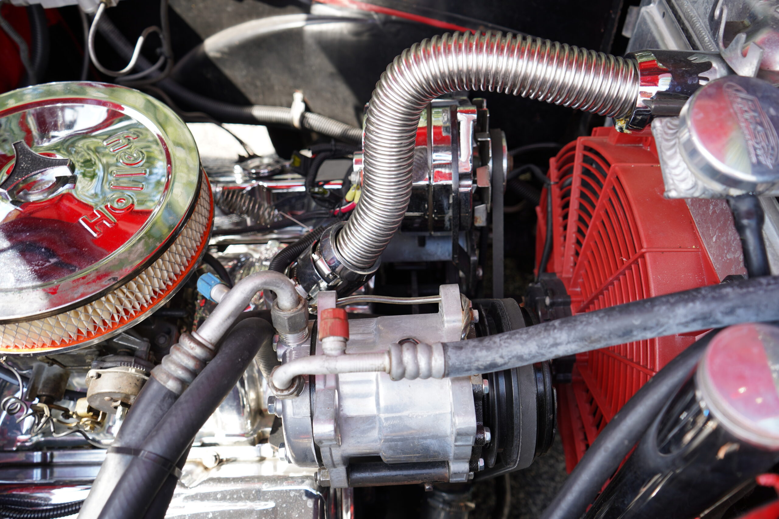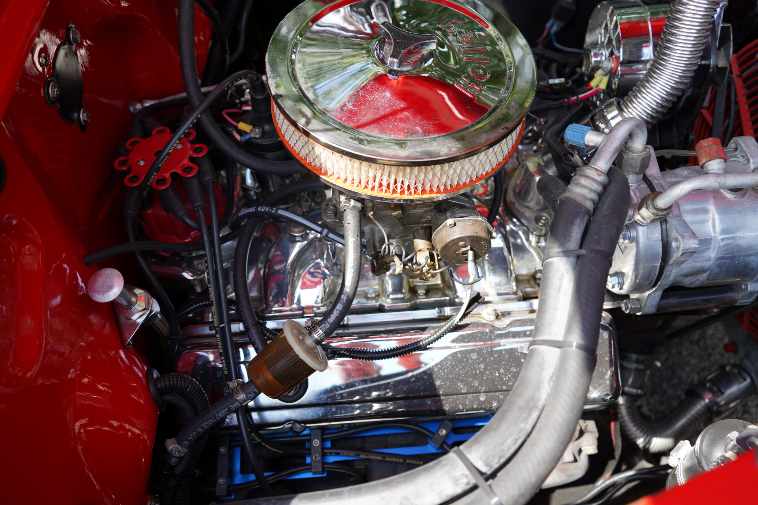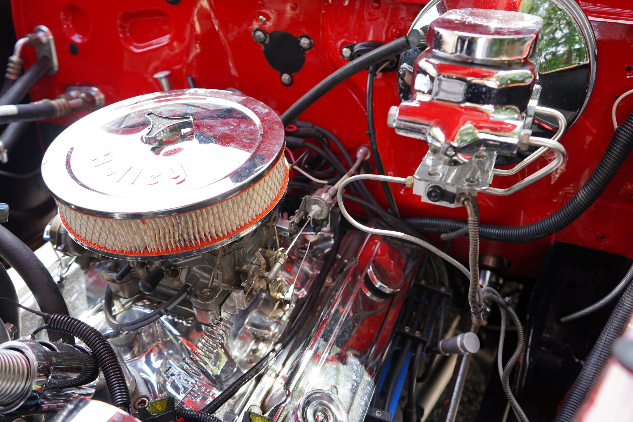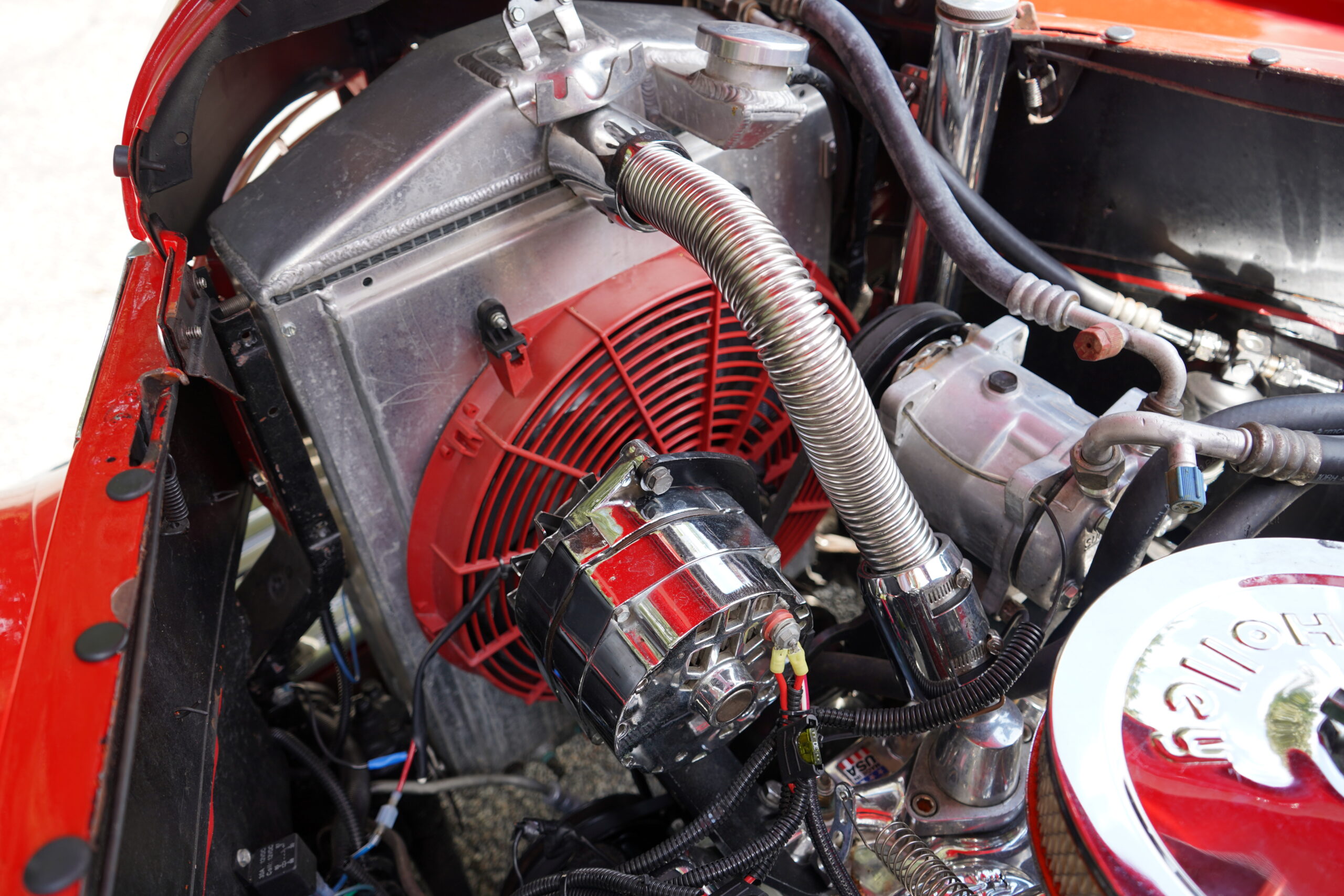 Powering this RestoMod is a strong 350ci Chevrolet V8 paired with a smooth 700R4 automatic transmission. The engine bay is dressed with a chrome dress-up kit, ensuring it looks as good as it performs. Additional upgrades include modern air conditioning with R134a, delivering comfort alongside classic hot rod performance.