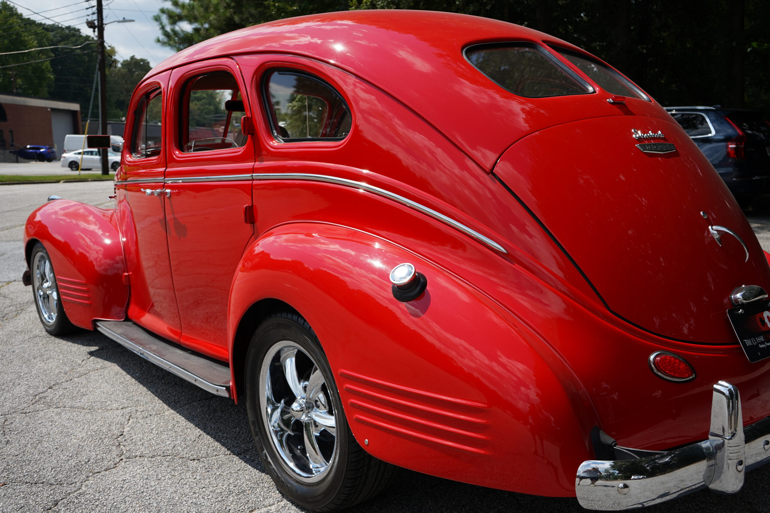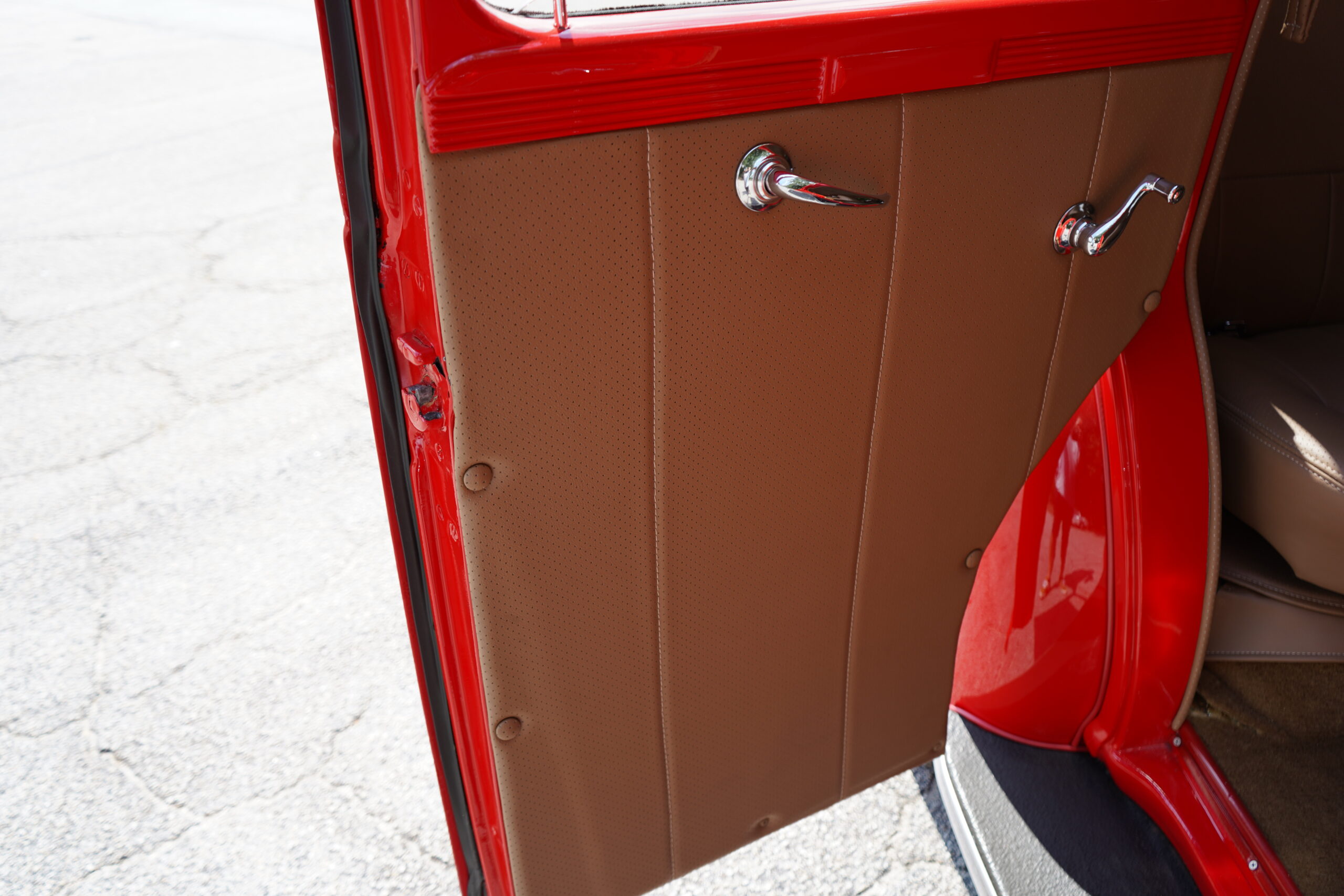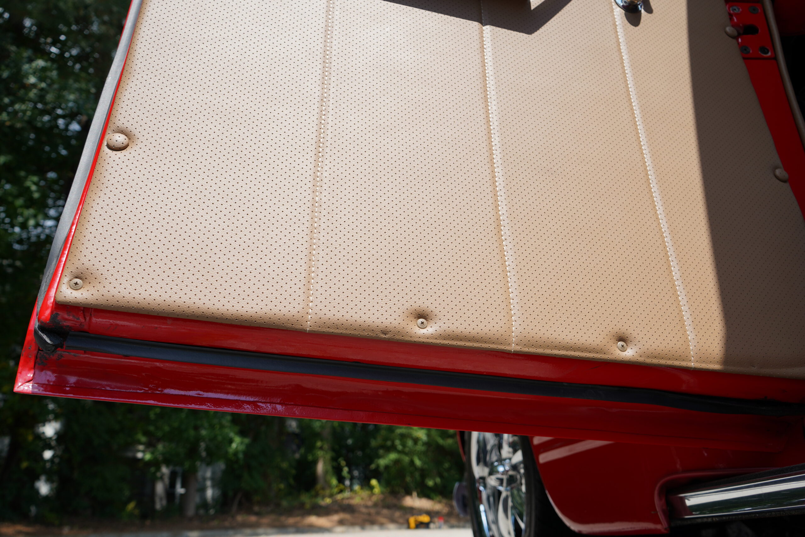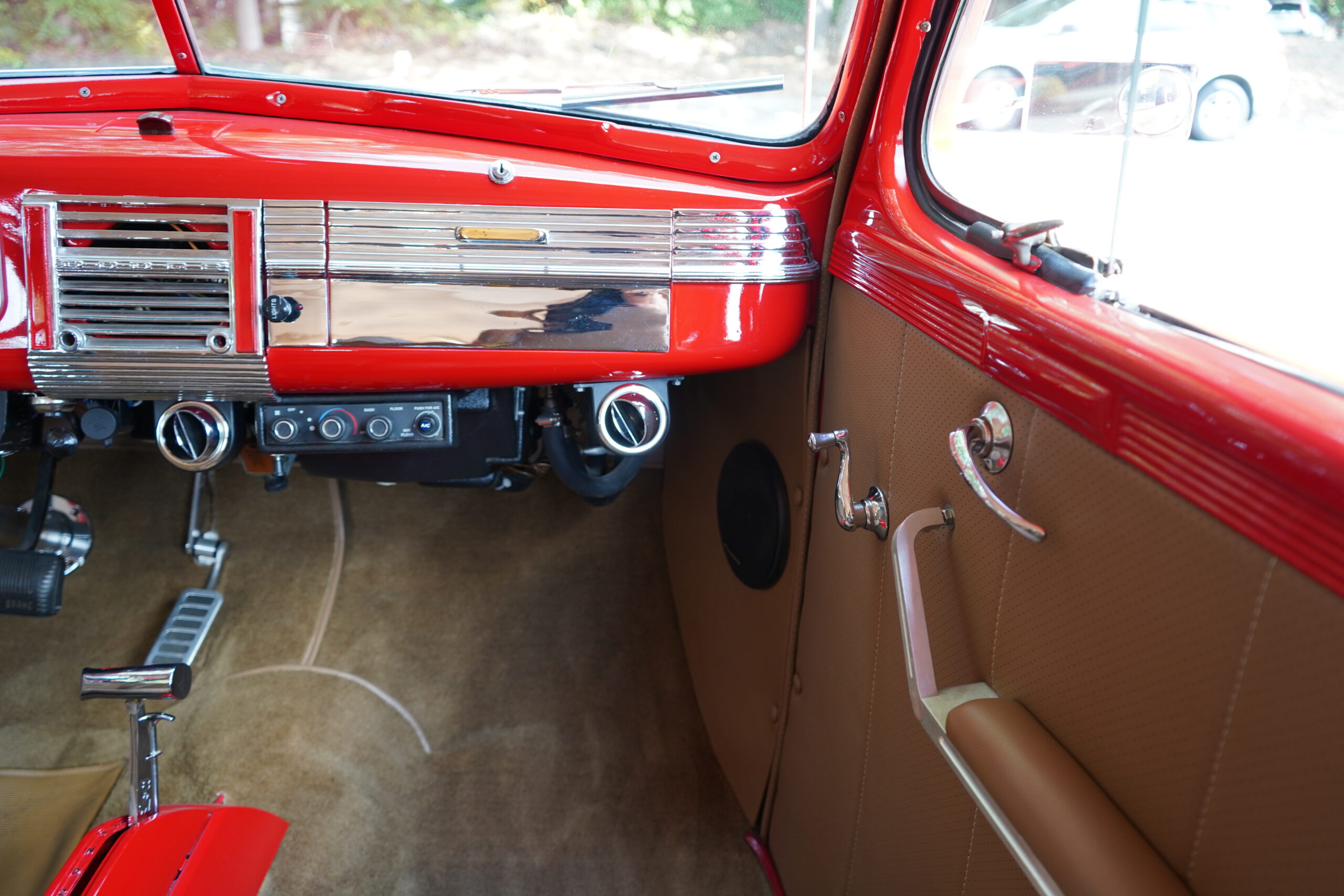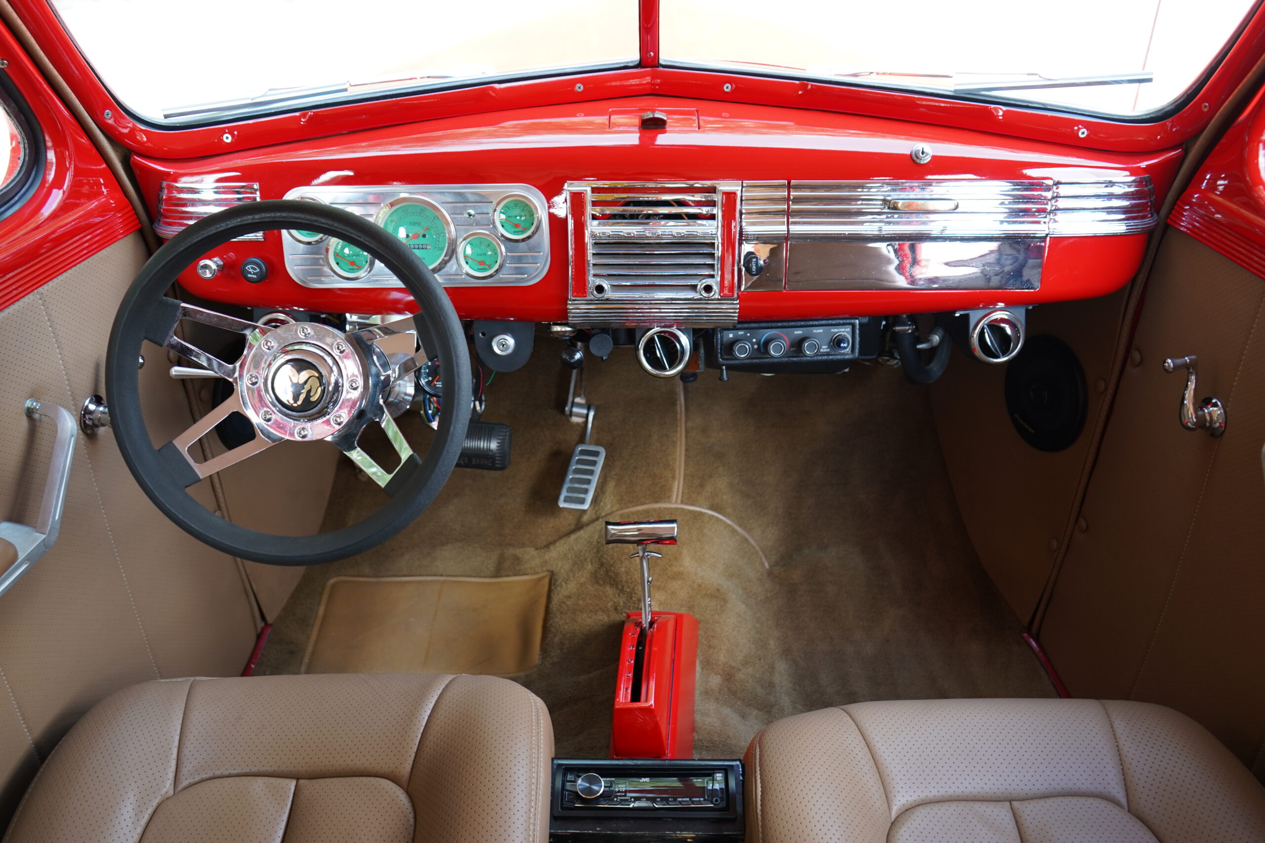 Finished in striking Torch Red, this Dodge D11 showcases a flawless paint job highlighted by custom chrome accents and contrasted with a luxurious tan leather interior. Every detail reflects quality craftsmanship, making this D11 a true standout on the road or at any show.