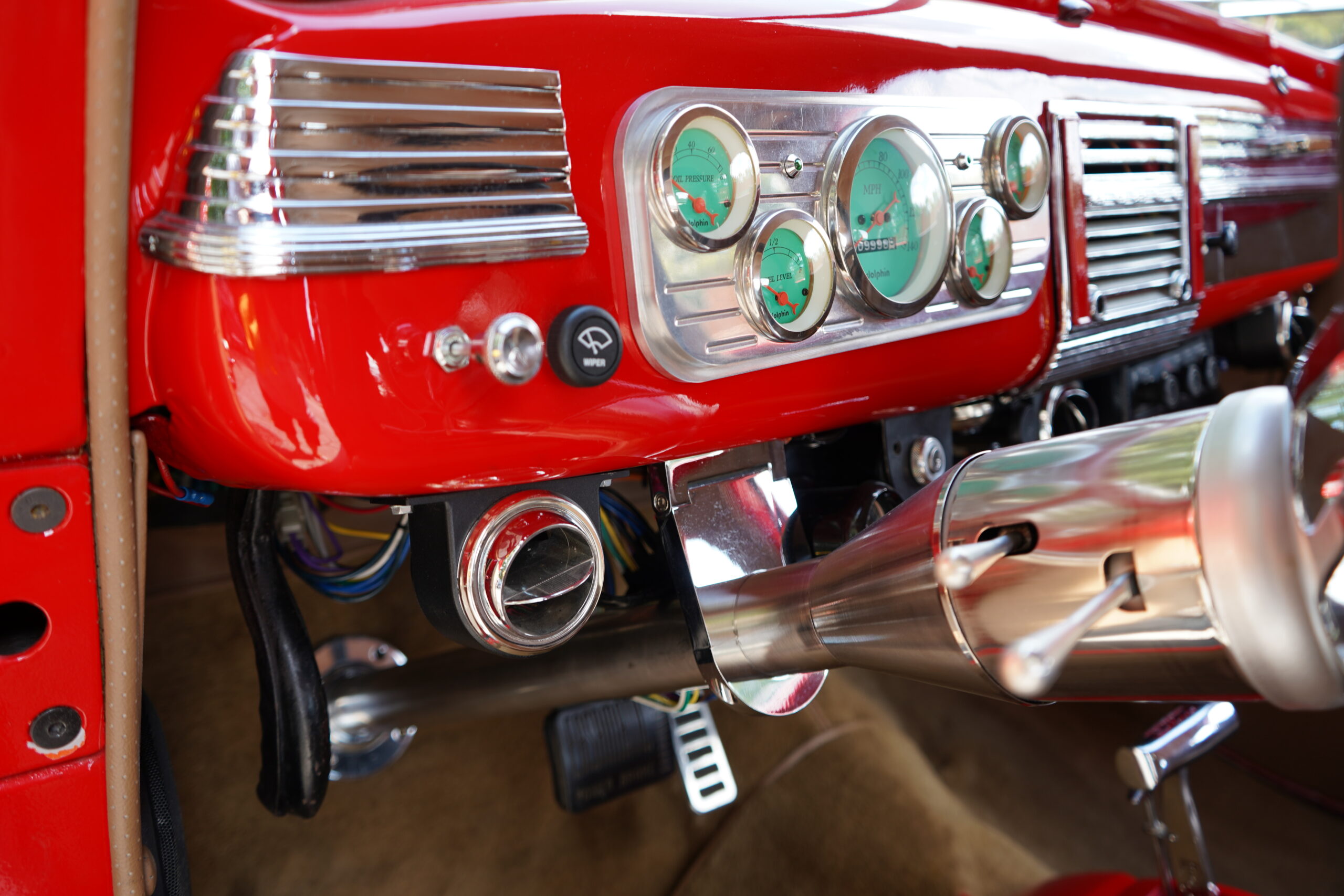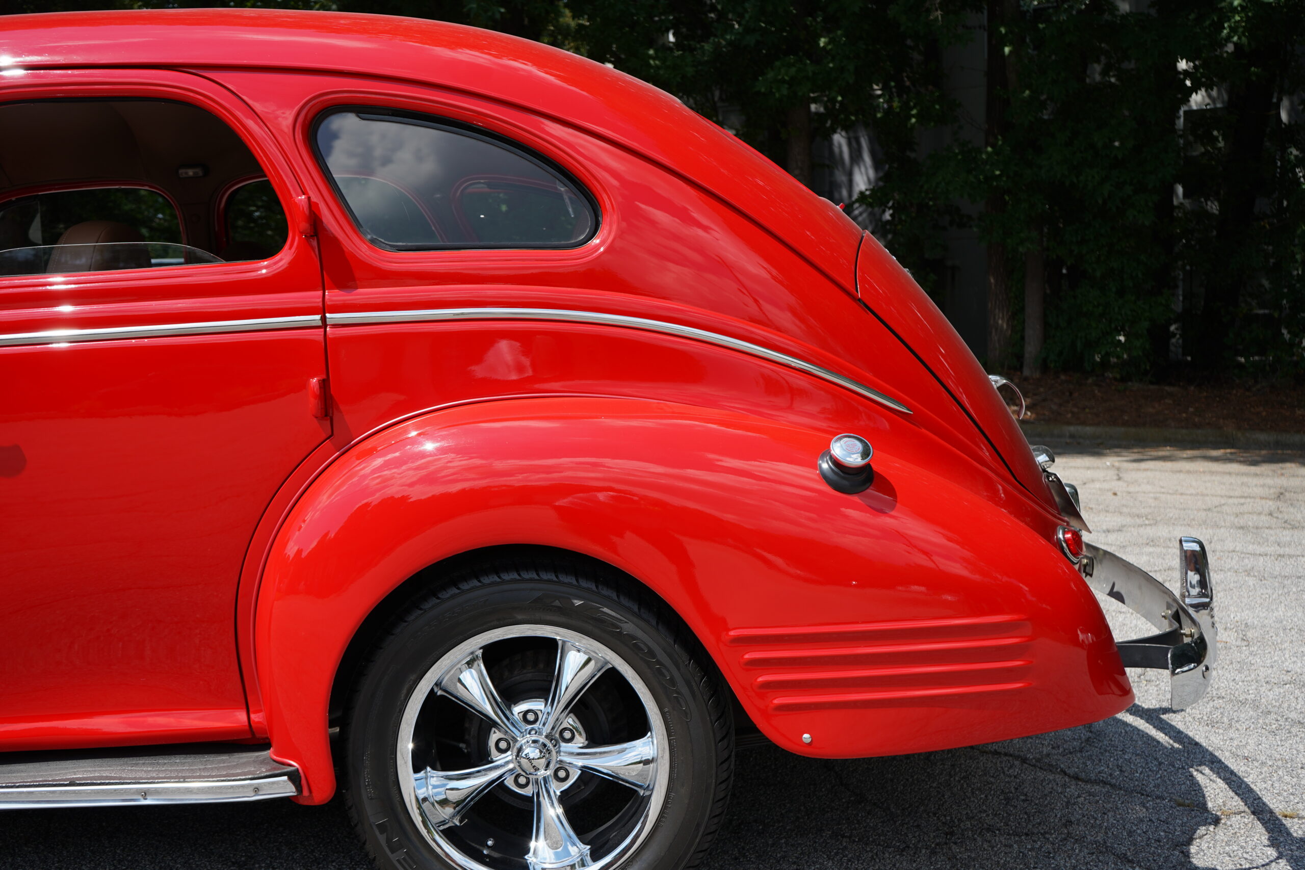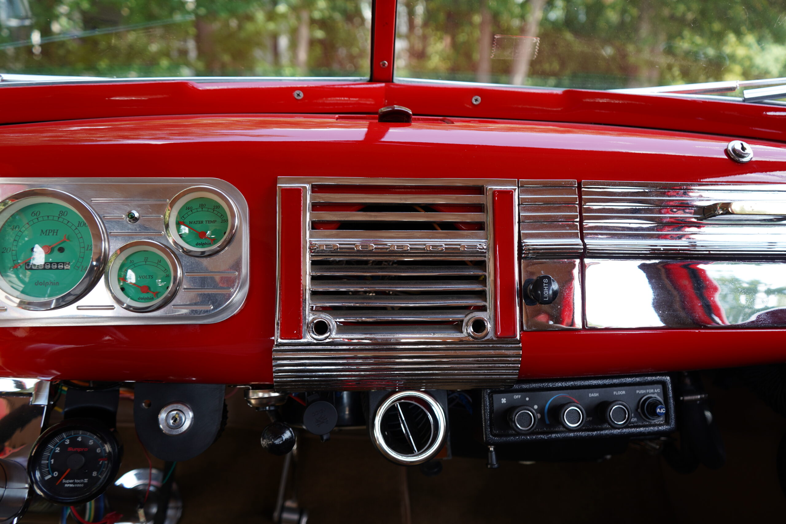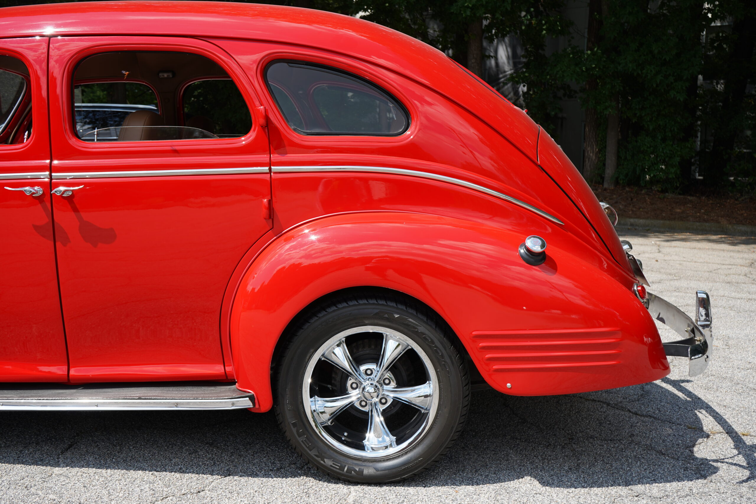 Finished in striking Torch Red, this Dodge D11 showcases a flawless paint job highlighted by custom chrome accents and contrasted with a luxurious tan leather interior. Every detail reflects quality craftsmanship, making this D11 a true standout on the road or at any show.