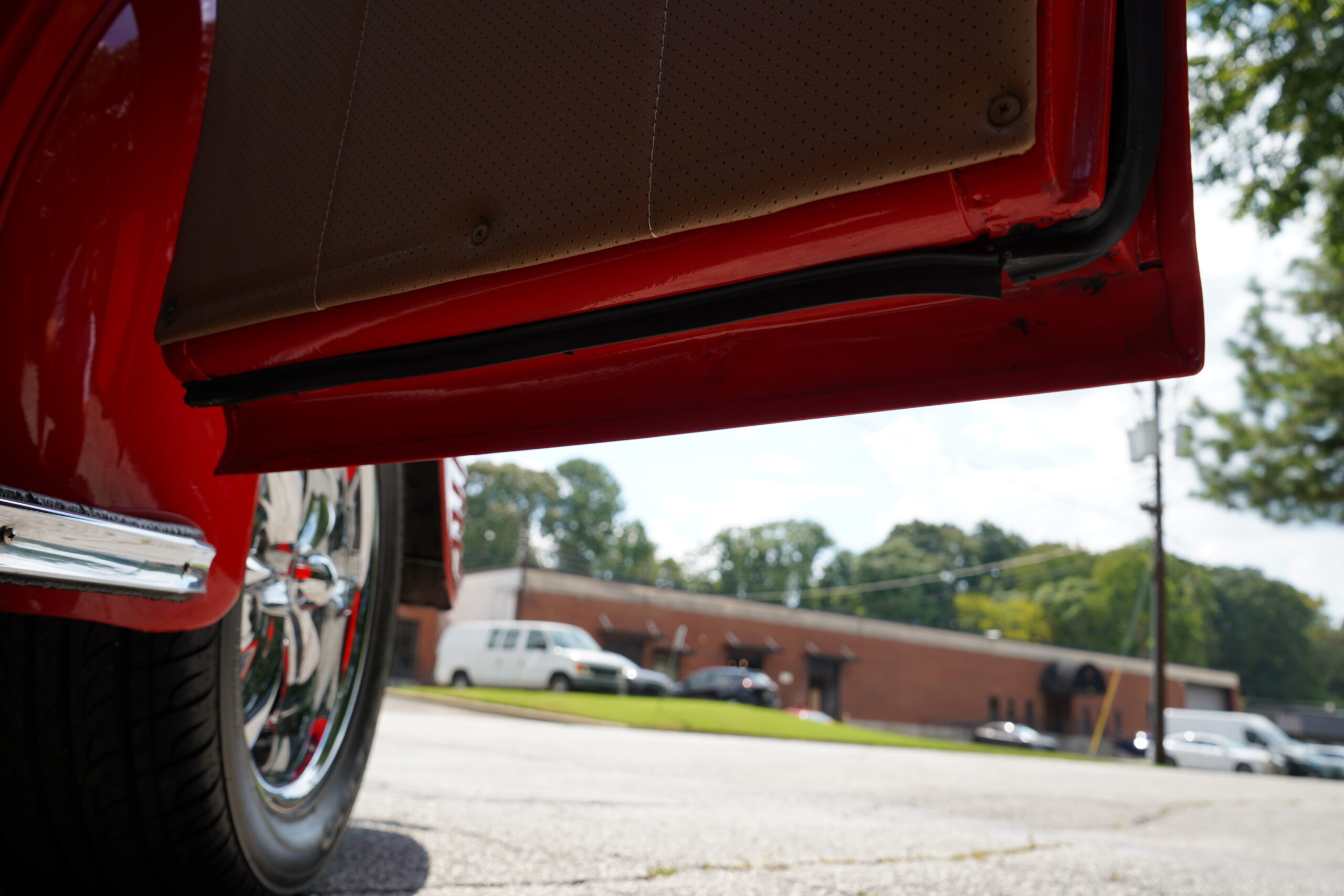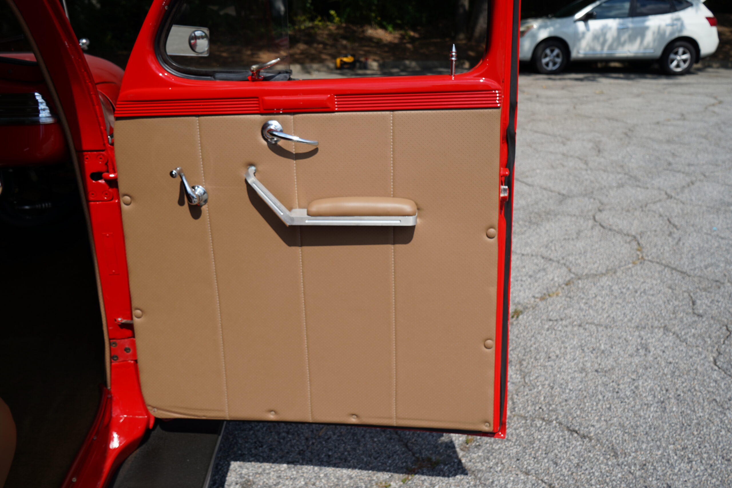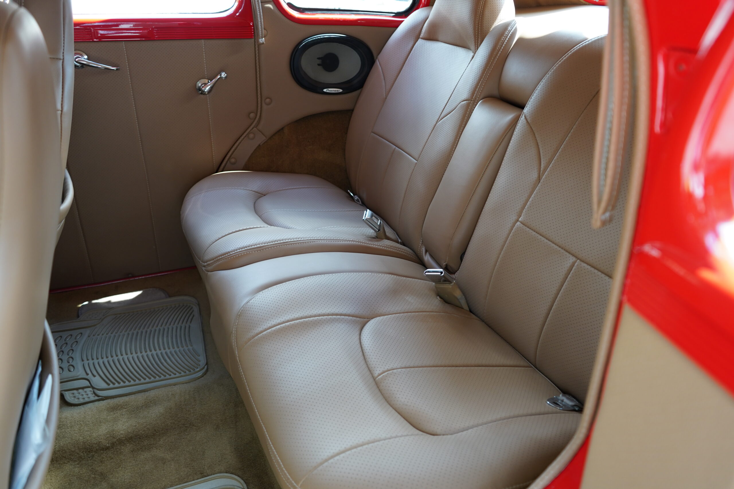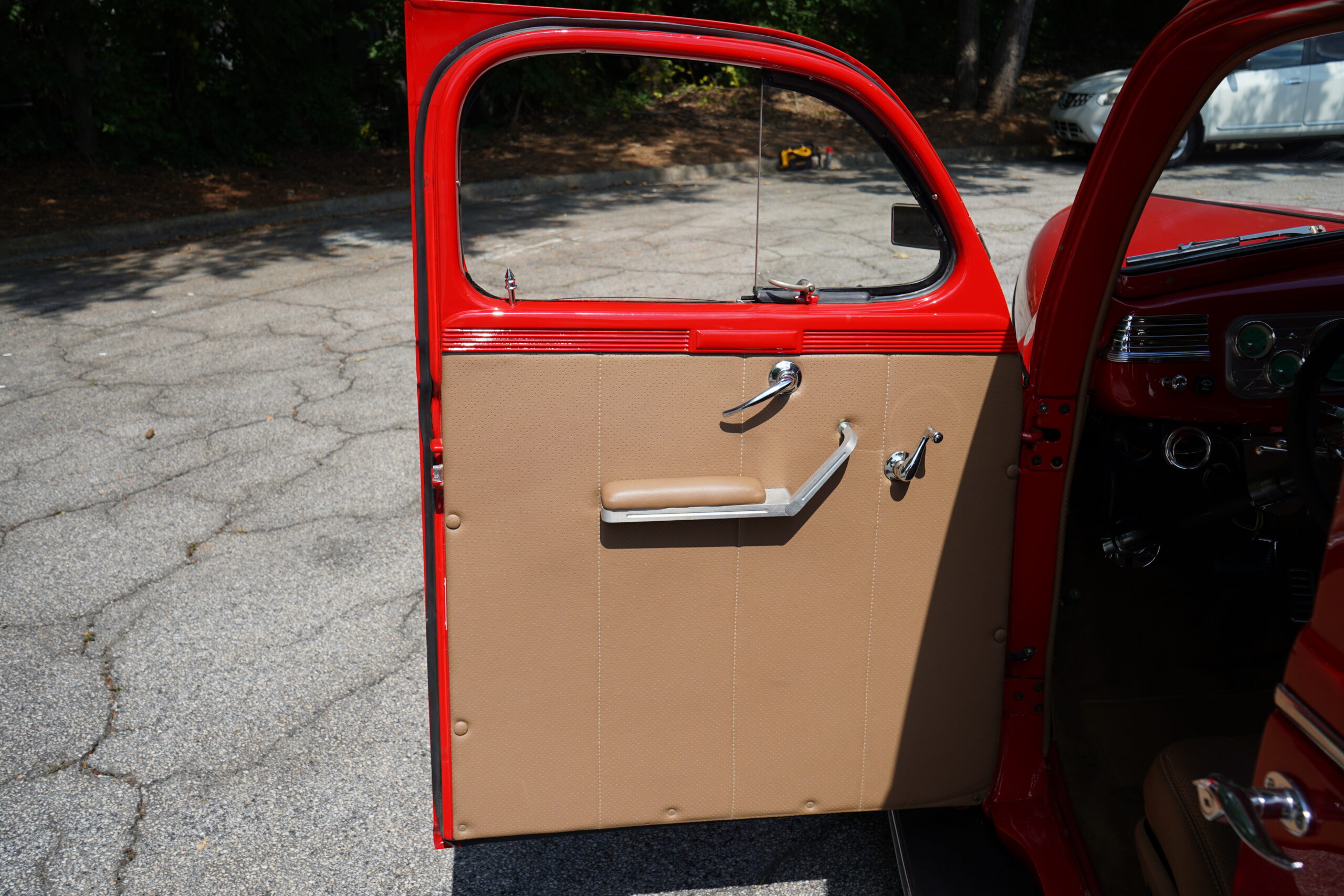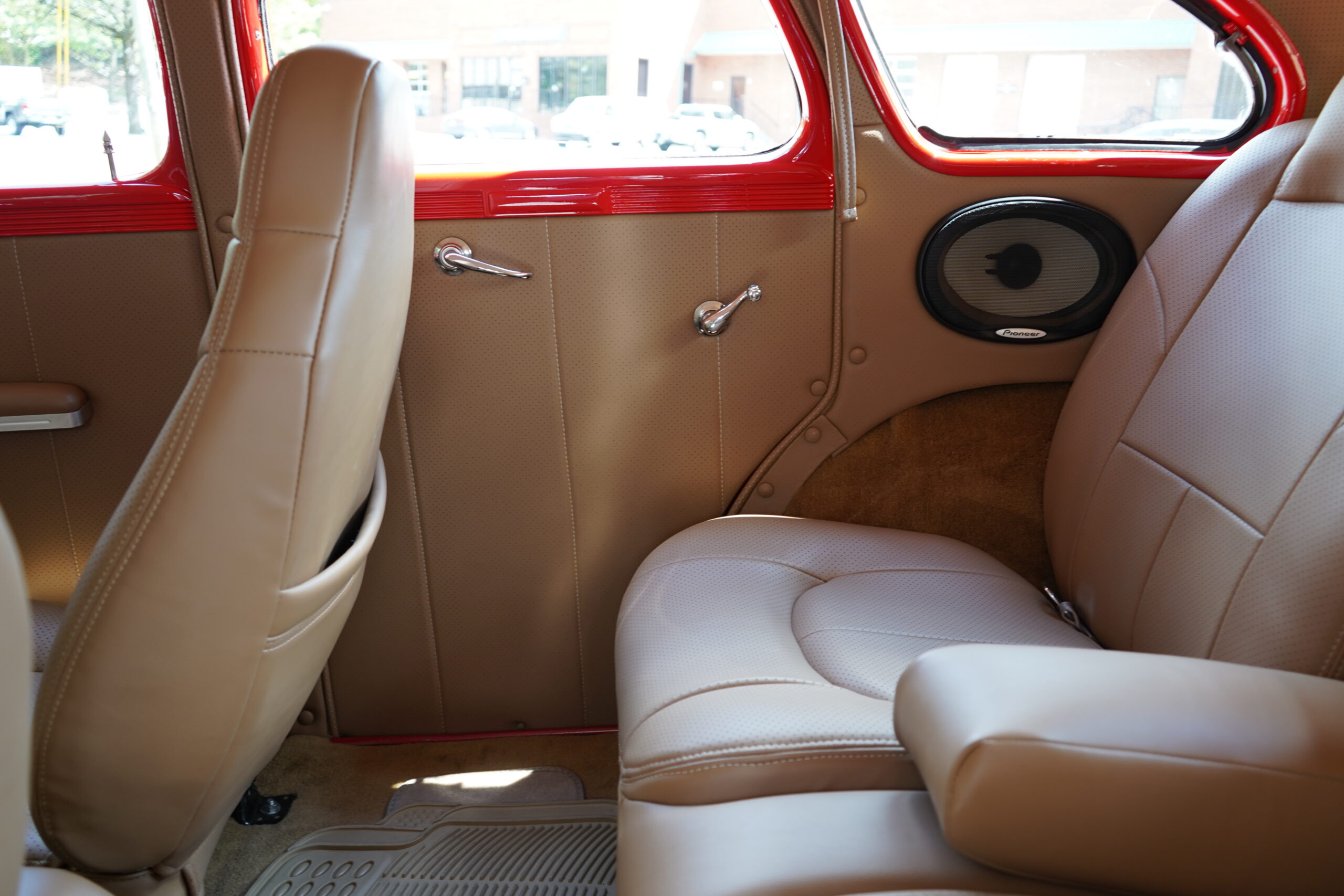 Finished in striking Torch Red, this Dodge D11 showcases a flawless paint job highlighted by custom chrome accents and contrasted with a luxurious tan leather interior. Every detail reflects quality craftsmanship, making this D11 a true standout on the road or at any show.