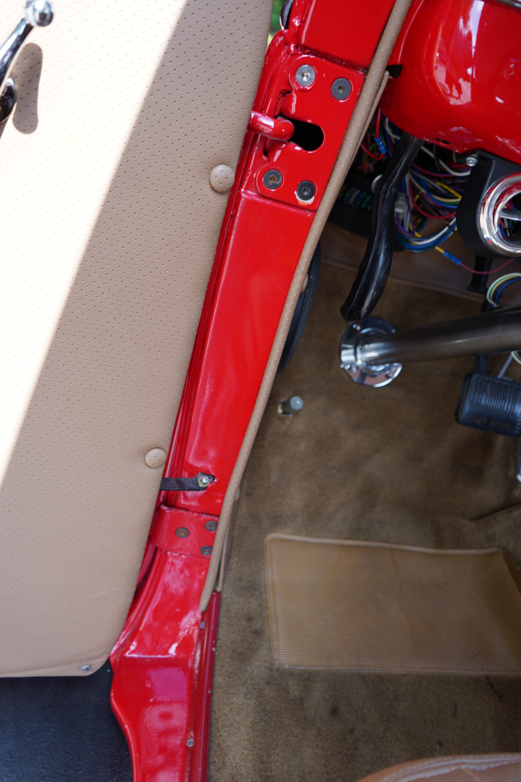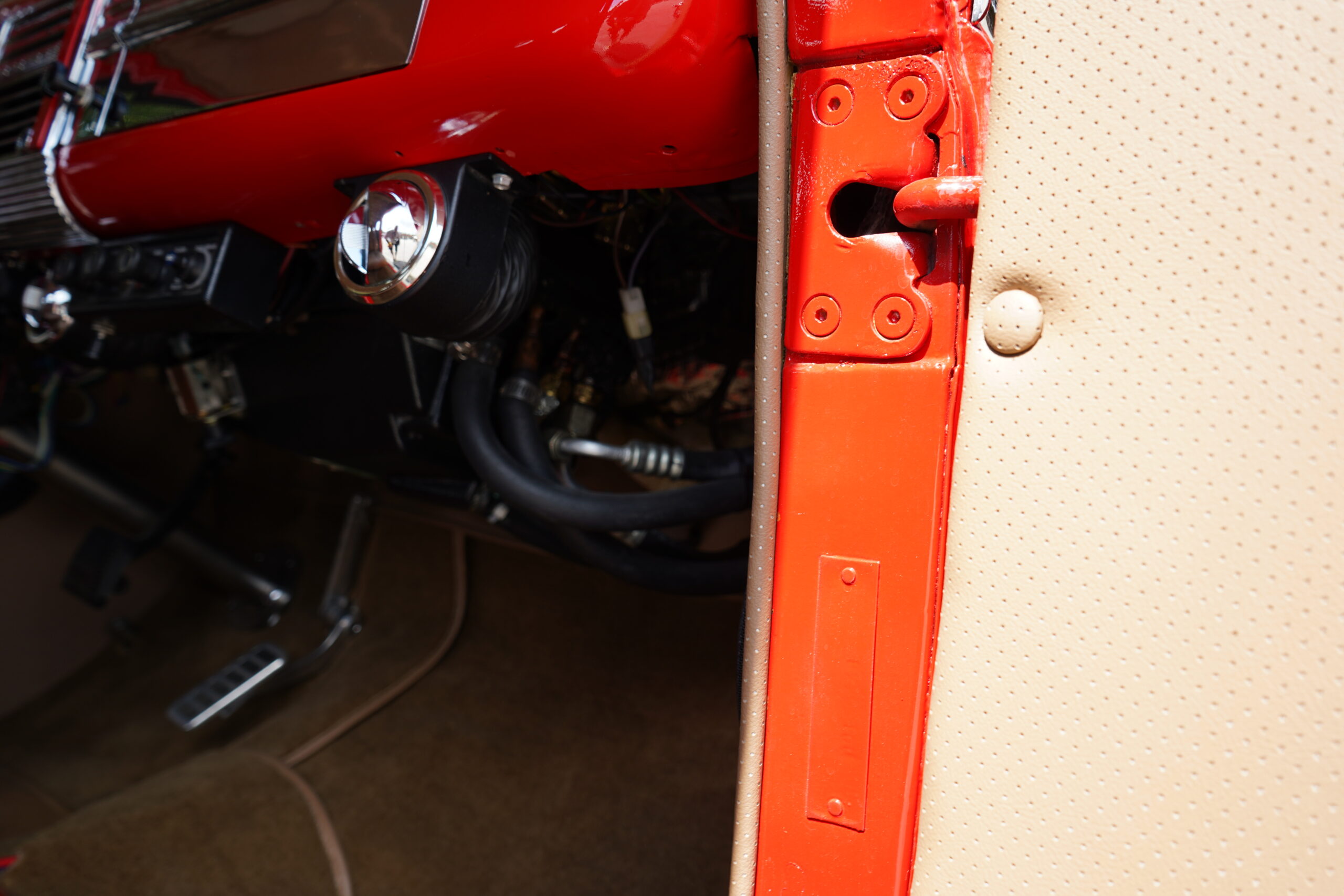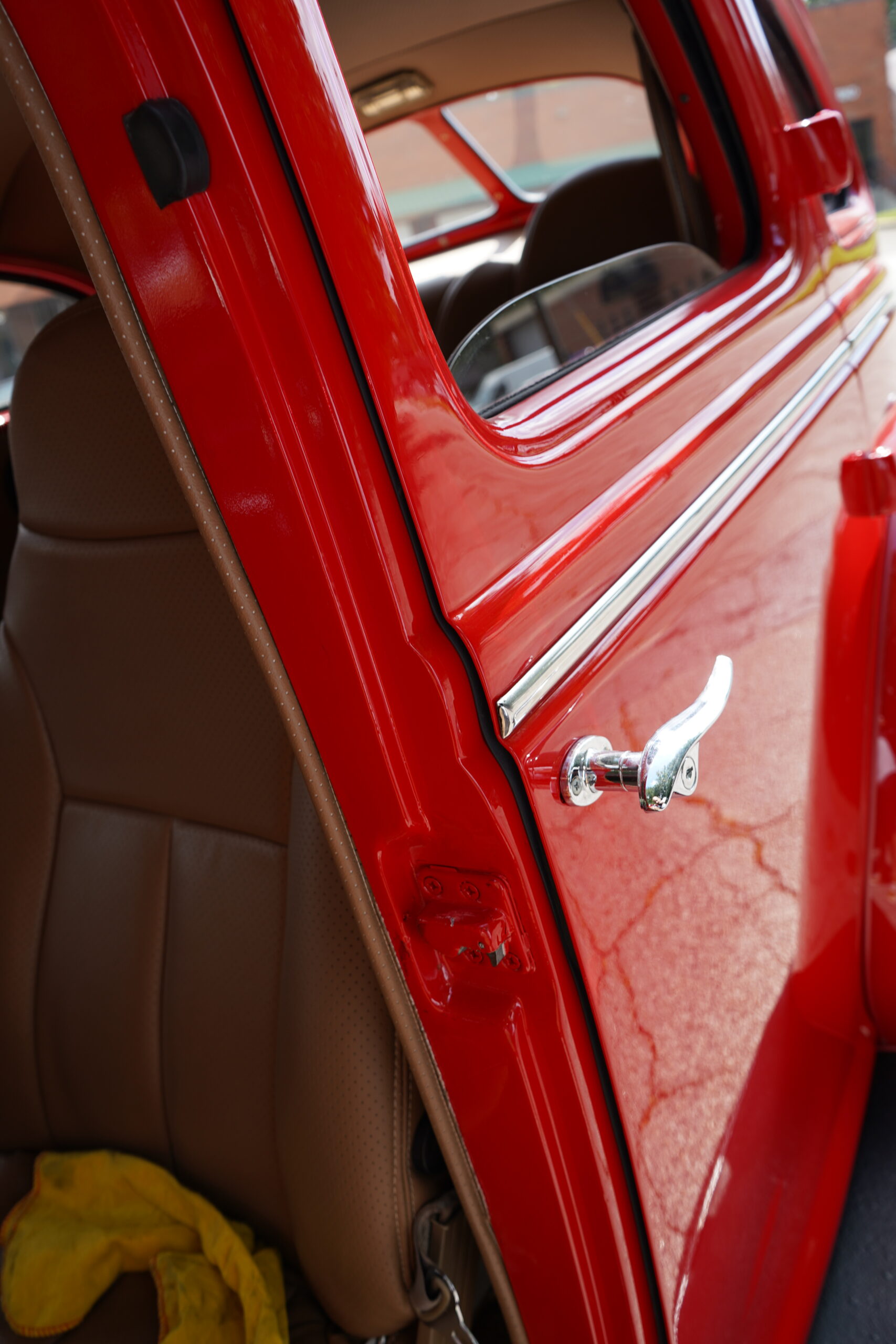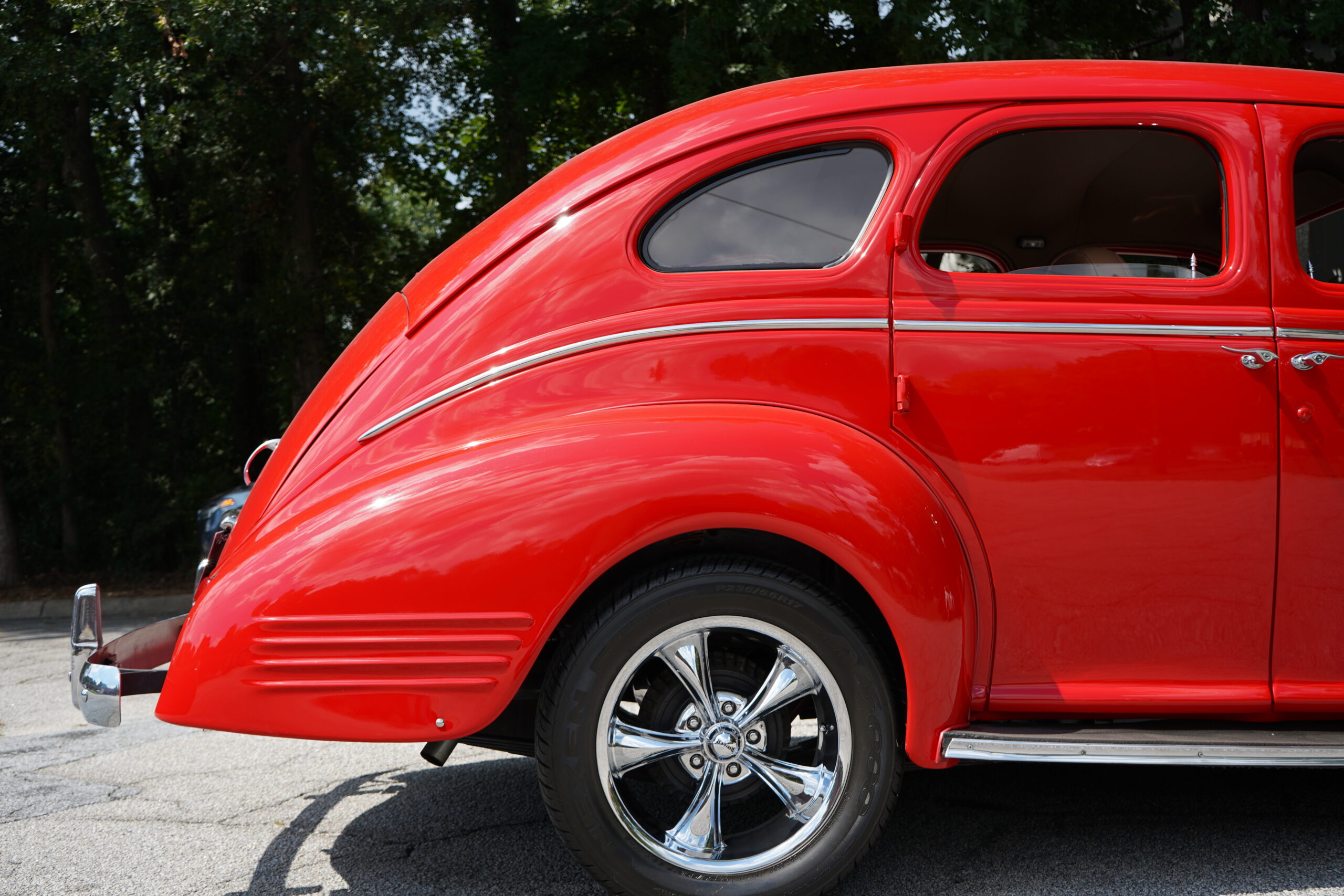 Finished in striking Torch Red, this Dodge D11 showcases a flawless paint job highlighted by custom chrome accents and contrasted with a luxurious tan leather interior. Every detail reflects quality craftsmanship, making this D11 a true standout on the road or at any show.