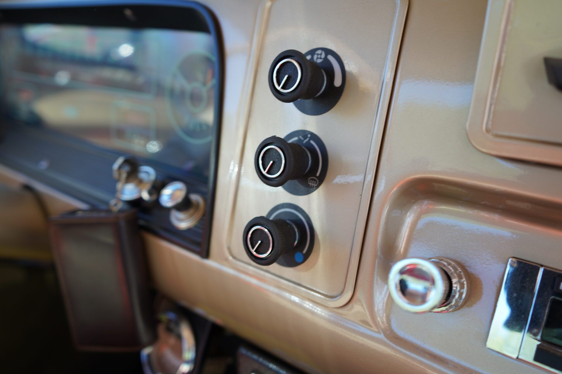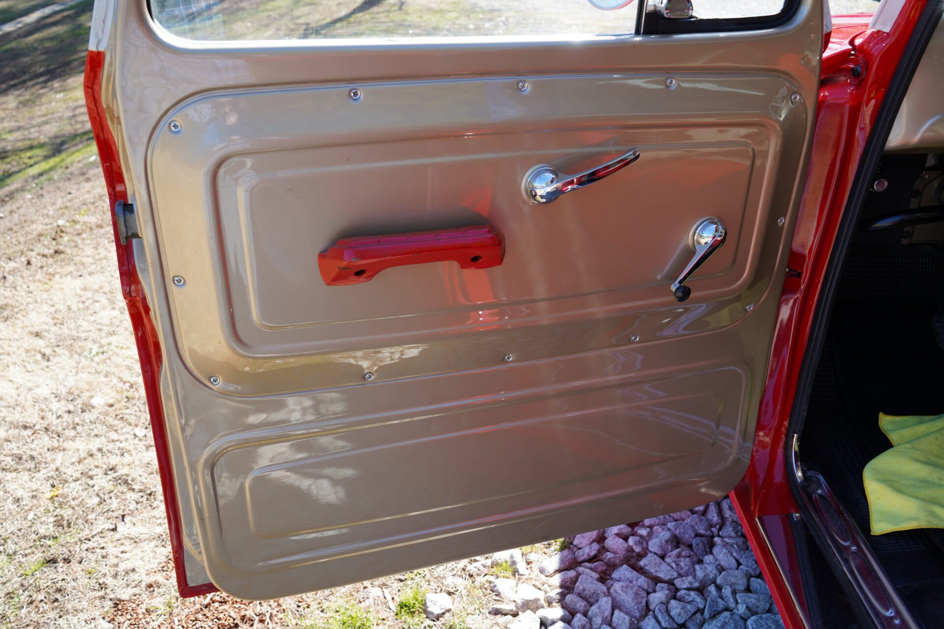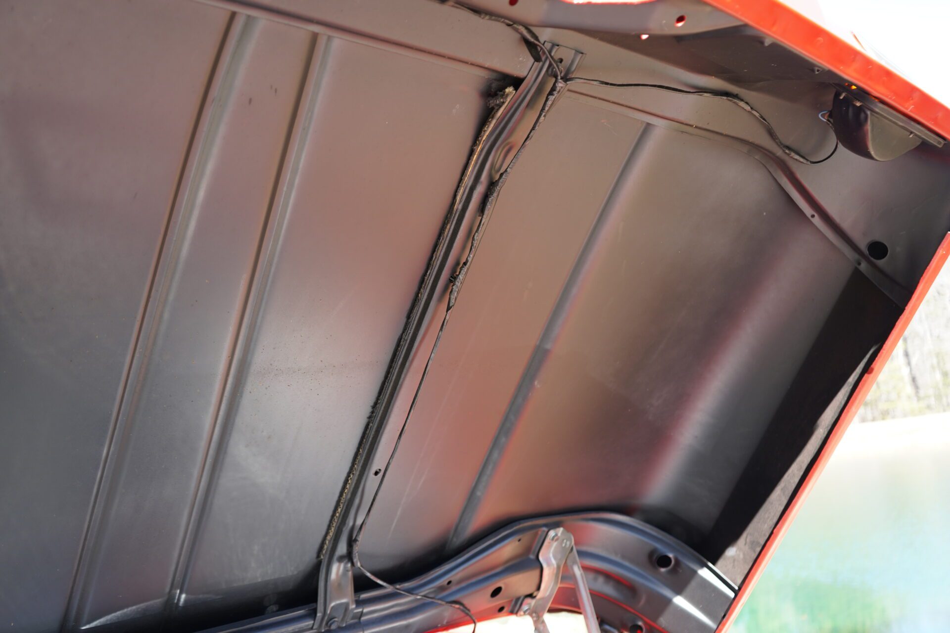 The exterior is finished in a high-quality epoxy-based paint with clearcoat, applied during a restoration completed approximately eight years ago. The finish still presents very well, with excellent shine and depth. A standout feature is the rare and desirable big rear window, adding both visual appeal and increased cabin light.