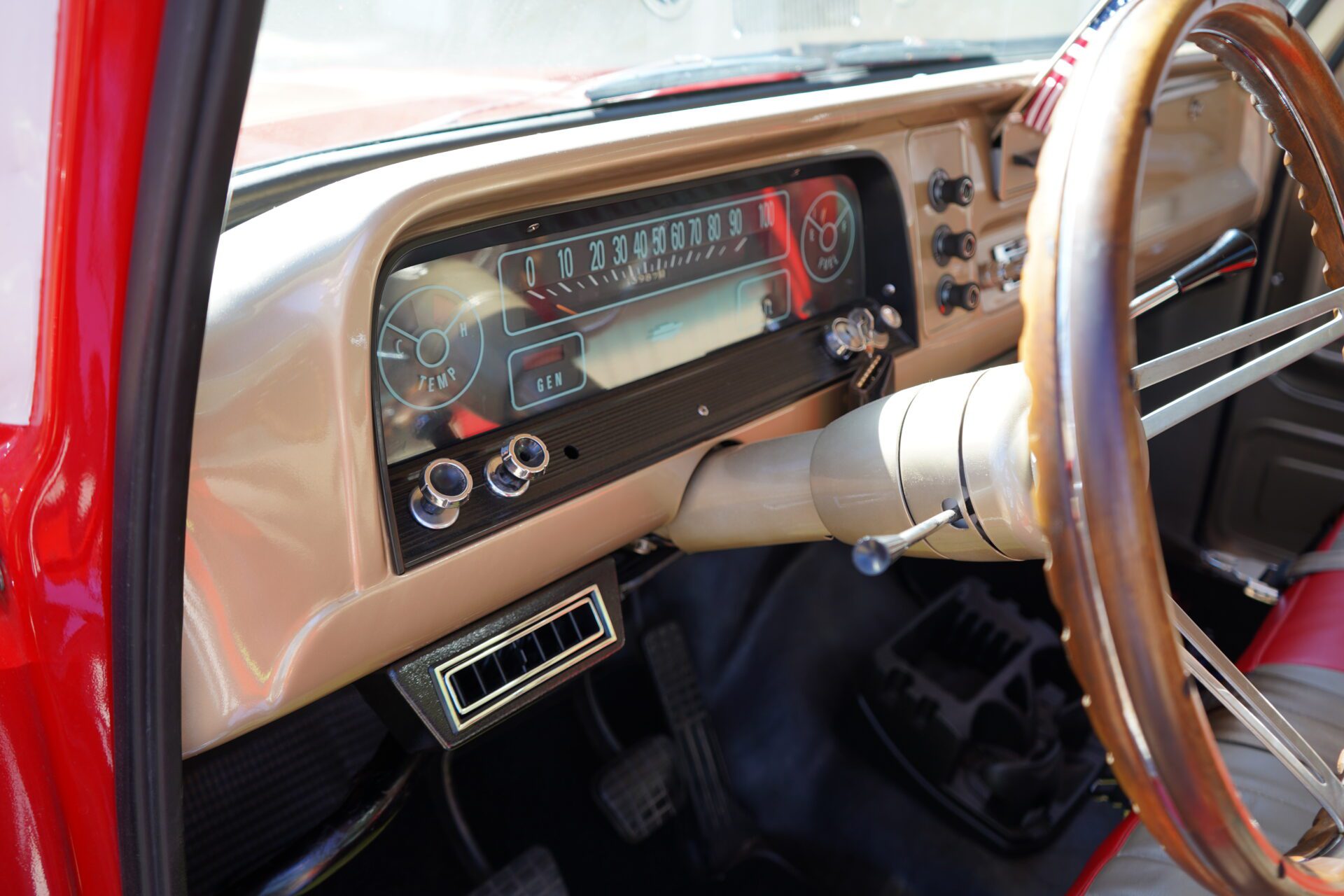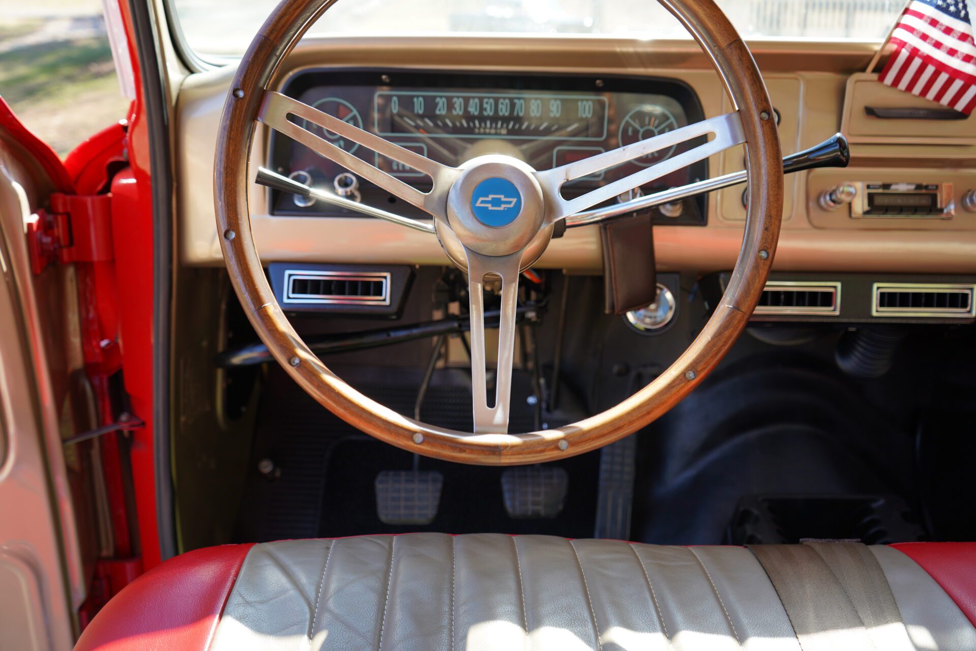 Out back, the truck features a beautiful walnut wood bed, professionally finished and exceptionally clean a real showpiece. The truck sits confidently on BFGoodrich Radial T/A tires, giving it a classic stance with modern road manners.