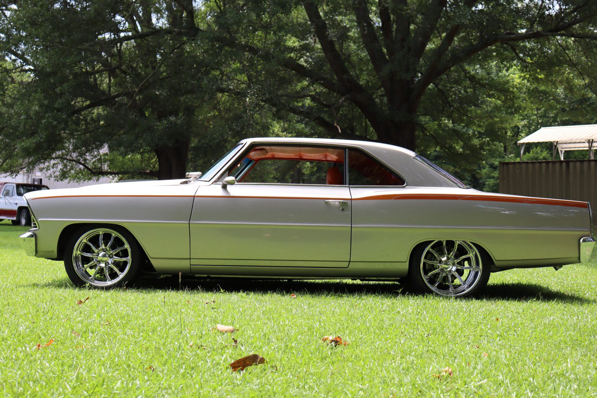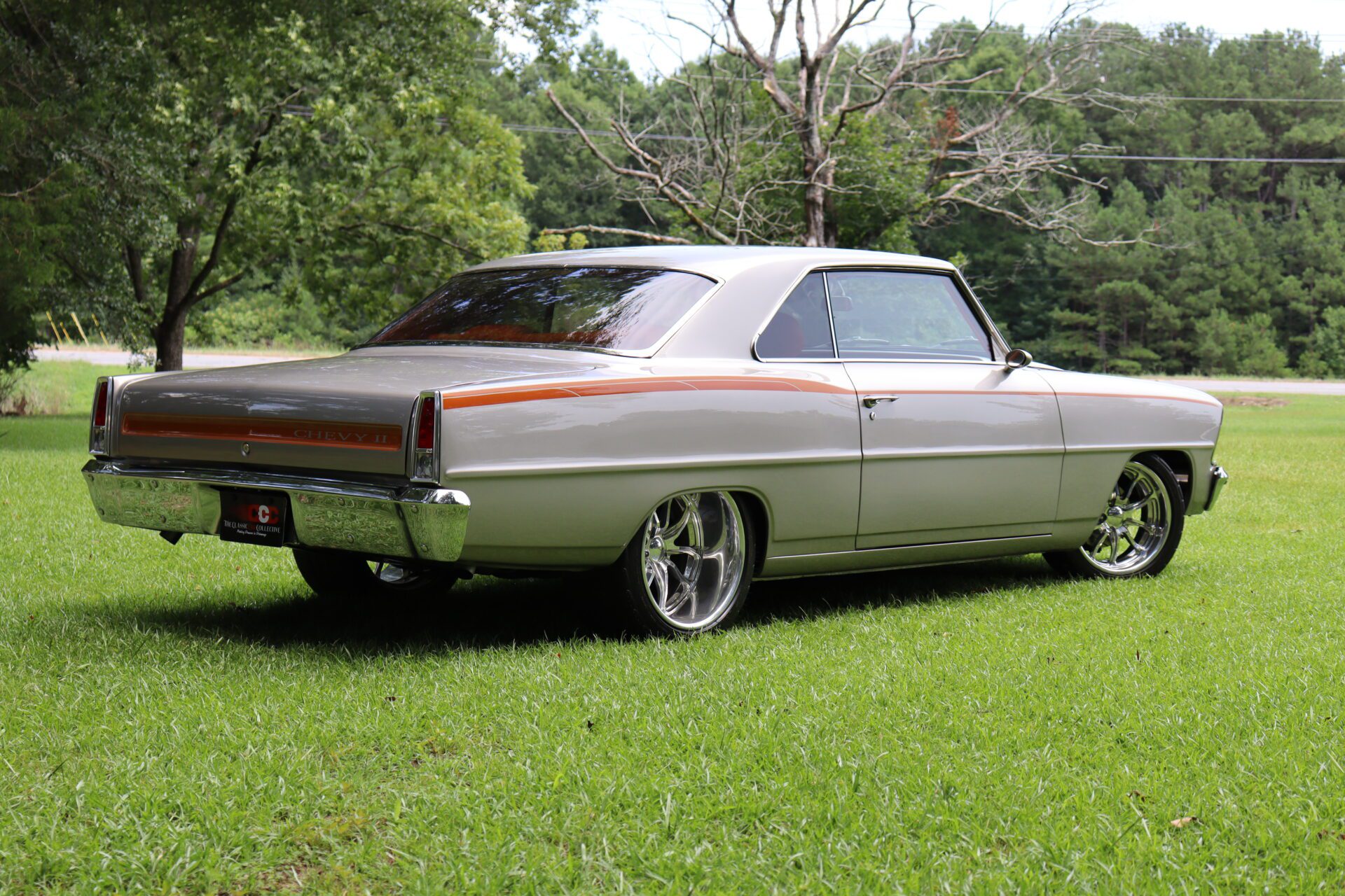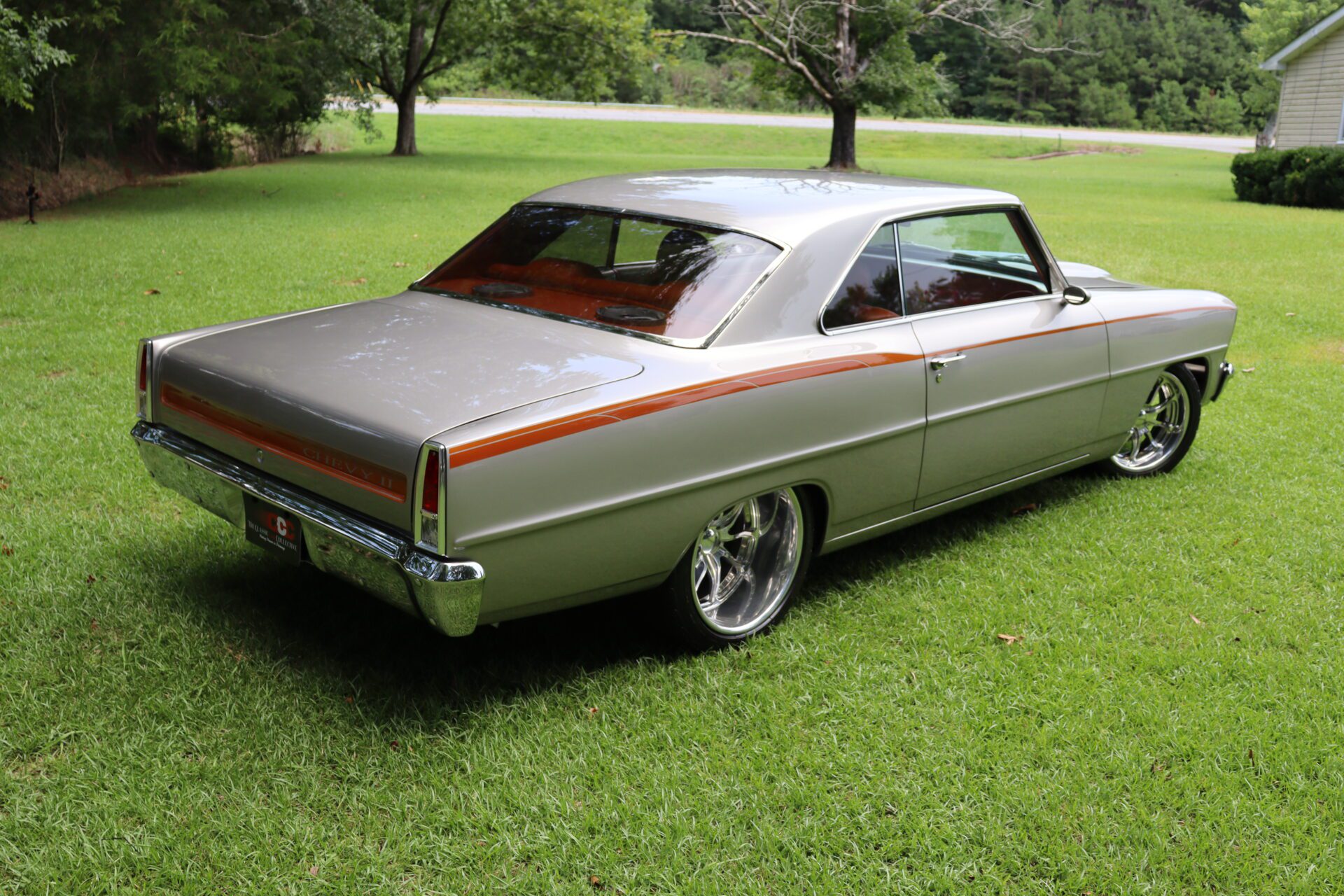 This Chevy II rolls on striking 18” BUDNIK WHEELS, and features COILOVER FRONT AND BACK suspension along with a FOUR LINK REAR SUSPENSION for an incredibly responsive ride. Experience the roar of the MAGNAFLOW EXHAUST as you cruise down the road, enhanced by POWER STEERING and HYDRO BRAKES for effortless maneuvering.