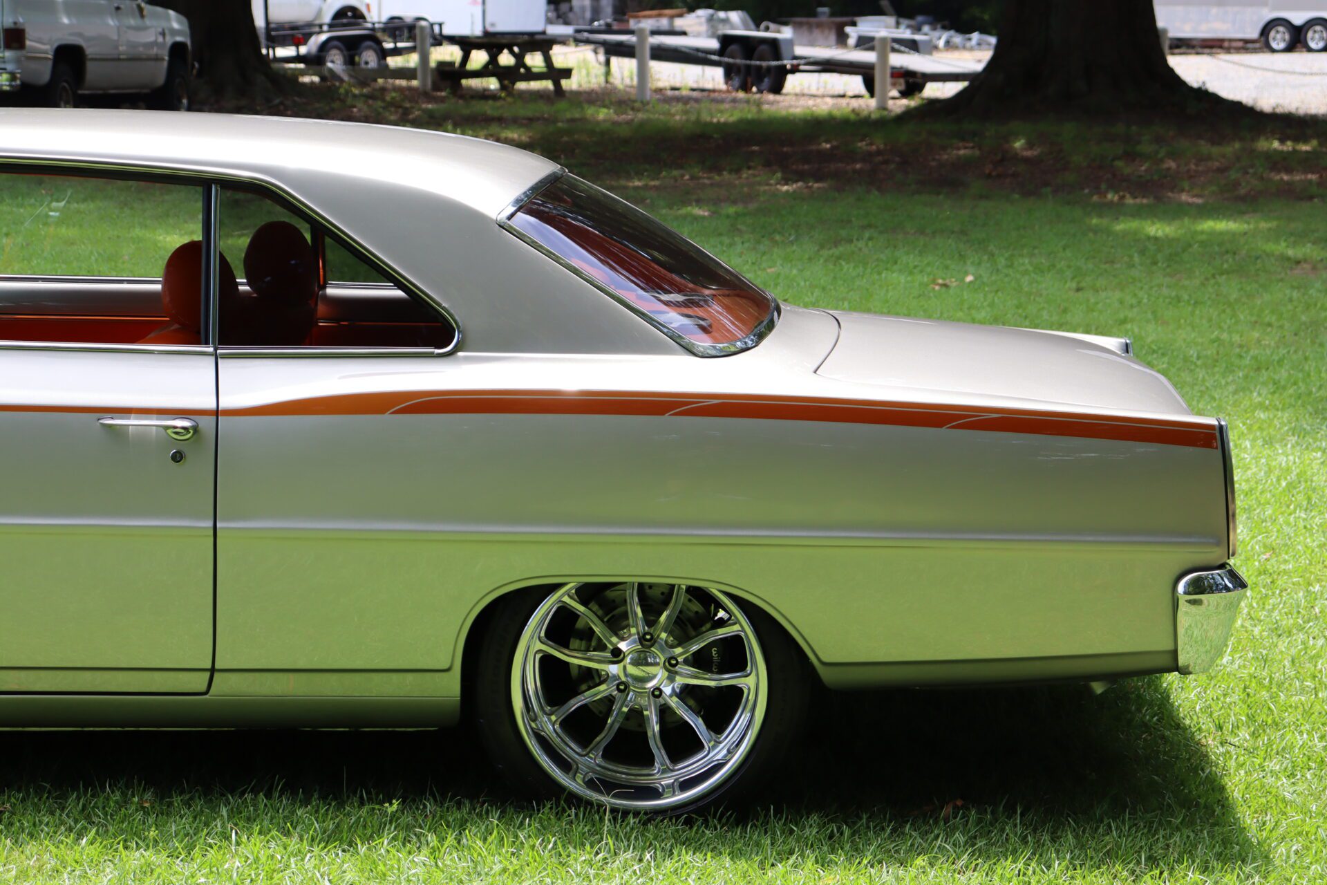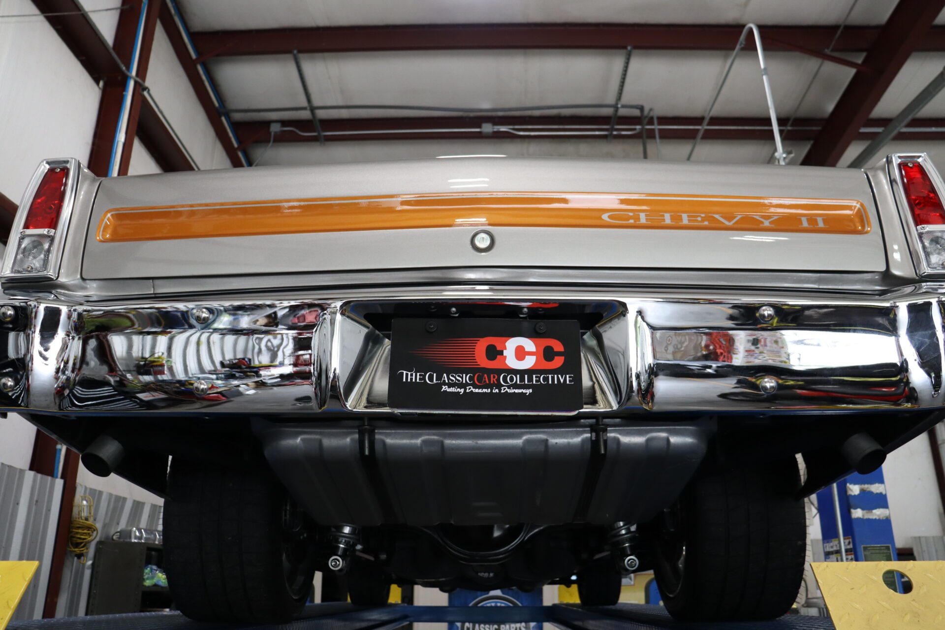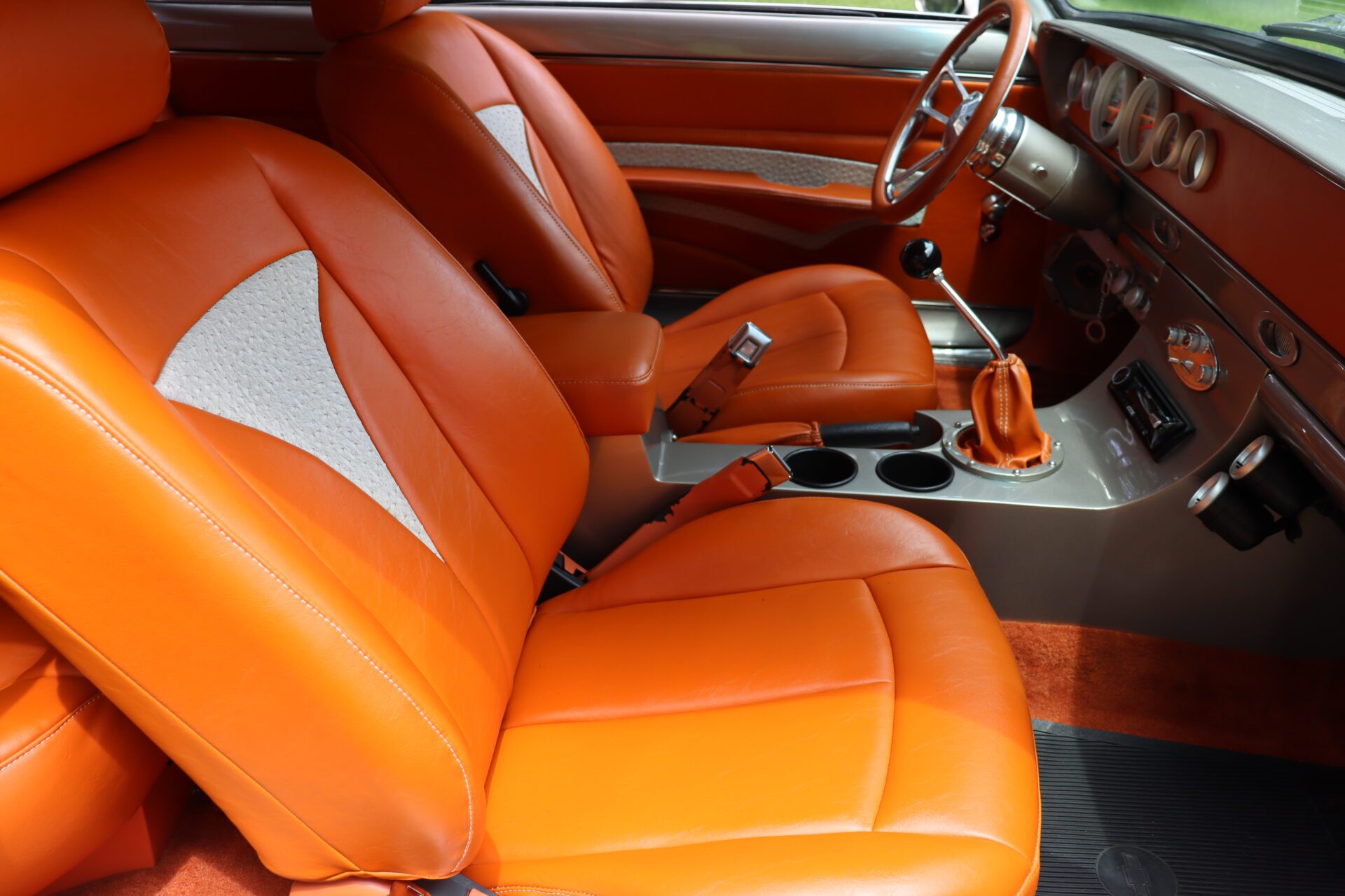 This Chevy II rolls on striking 18” BUDNIK WHEELS, and features COILOVER FRONT AND BACK suspension along with a FOUR LINK REAR SUSPENSION for an incredibly responsive ride. Experience the roar of the MAGNAFLOW EXHAUST as you cruise down the road, enhanced by POWER STEERING and HYDRO BRAKES for effortless maneuvering.
