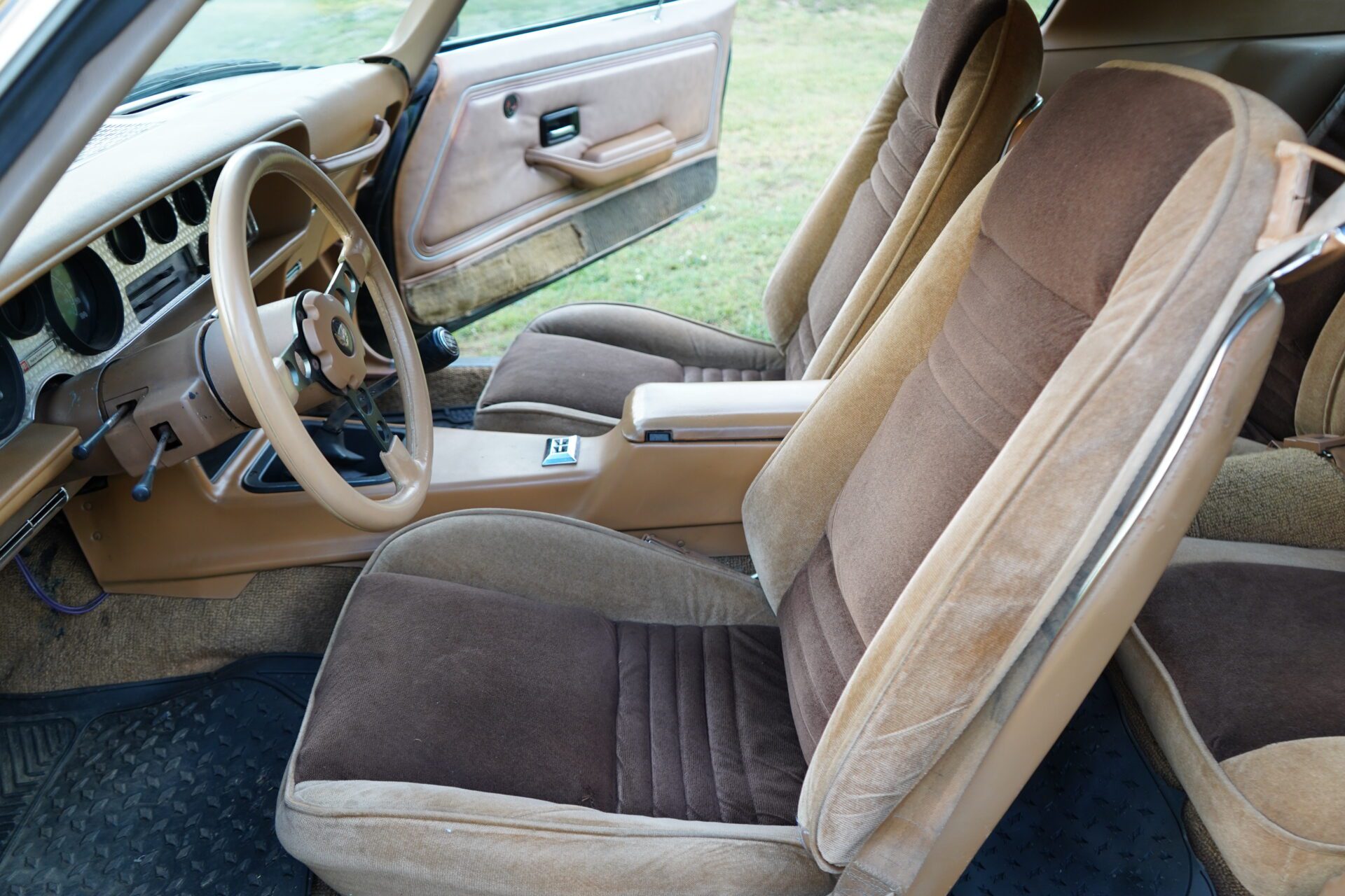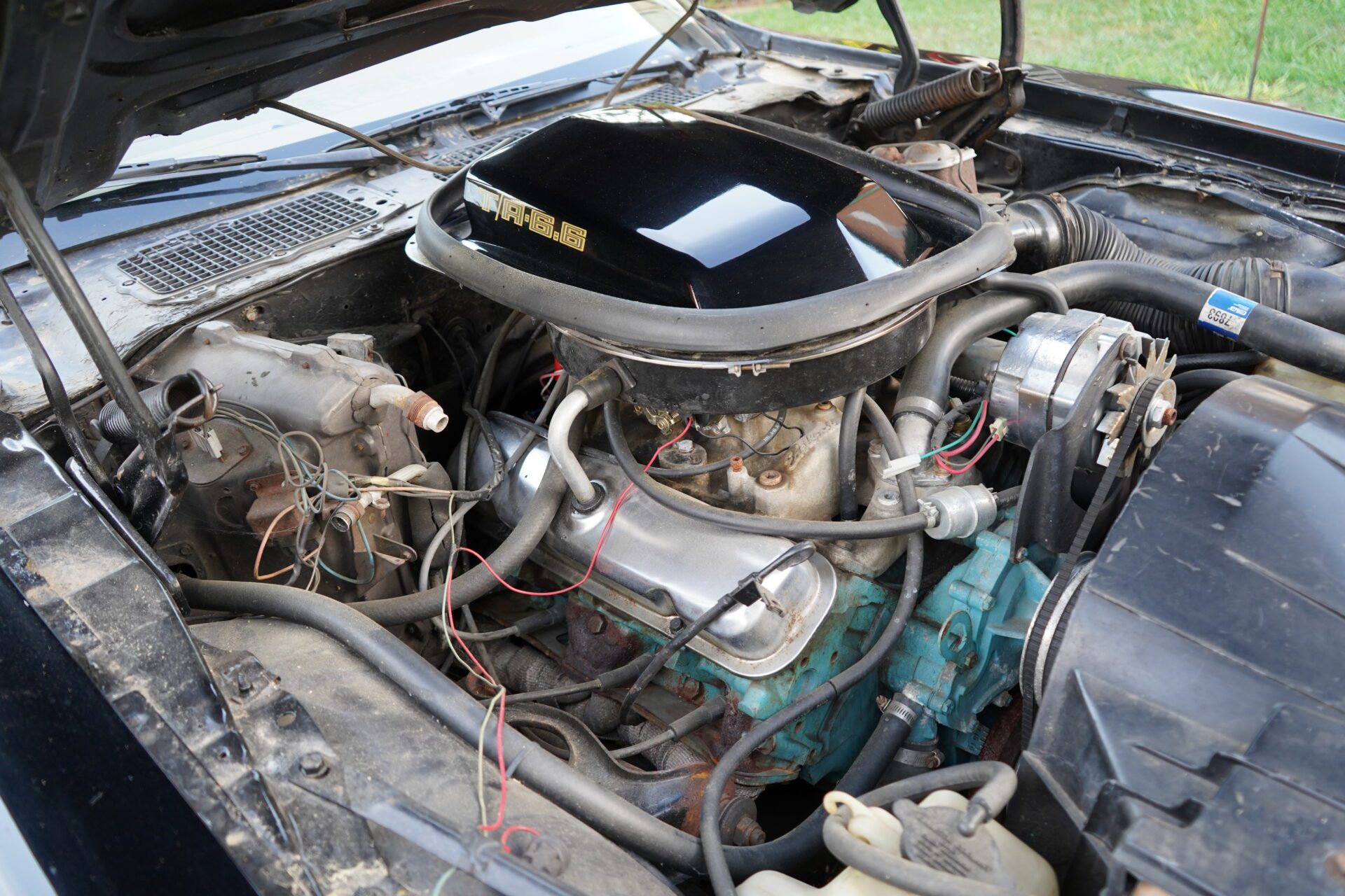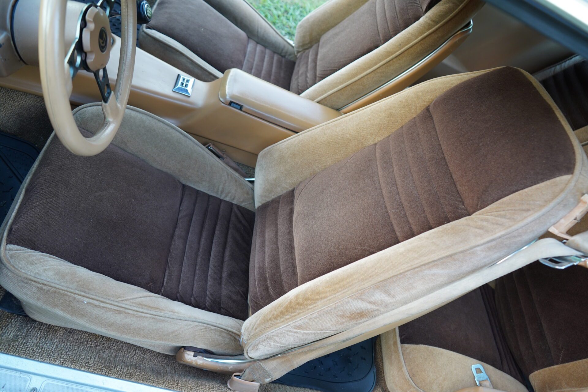 The exterior shows well from 10 feet with shiny paint and gold accents, though it does have the typical wear and patina you’d expect from a well-loved classic. Same goes for the interior — presentable and mostly original with minor aging, but totally usable and driver-ready.