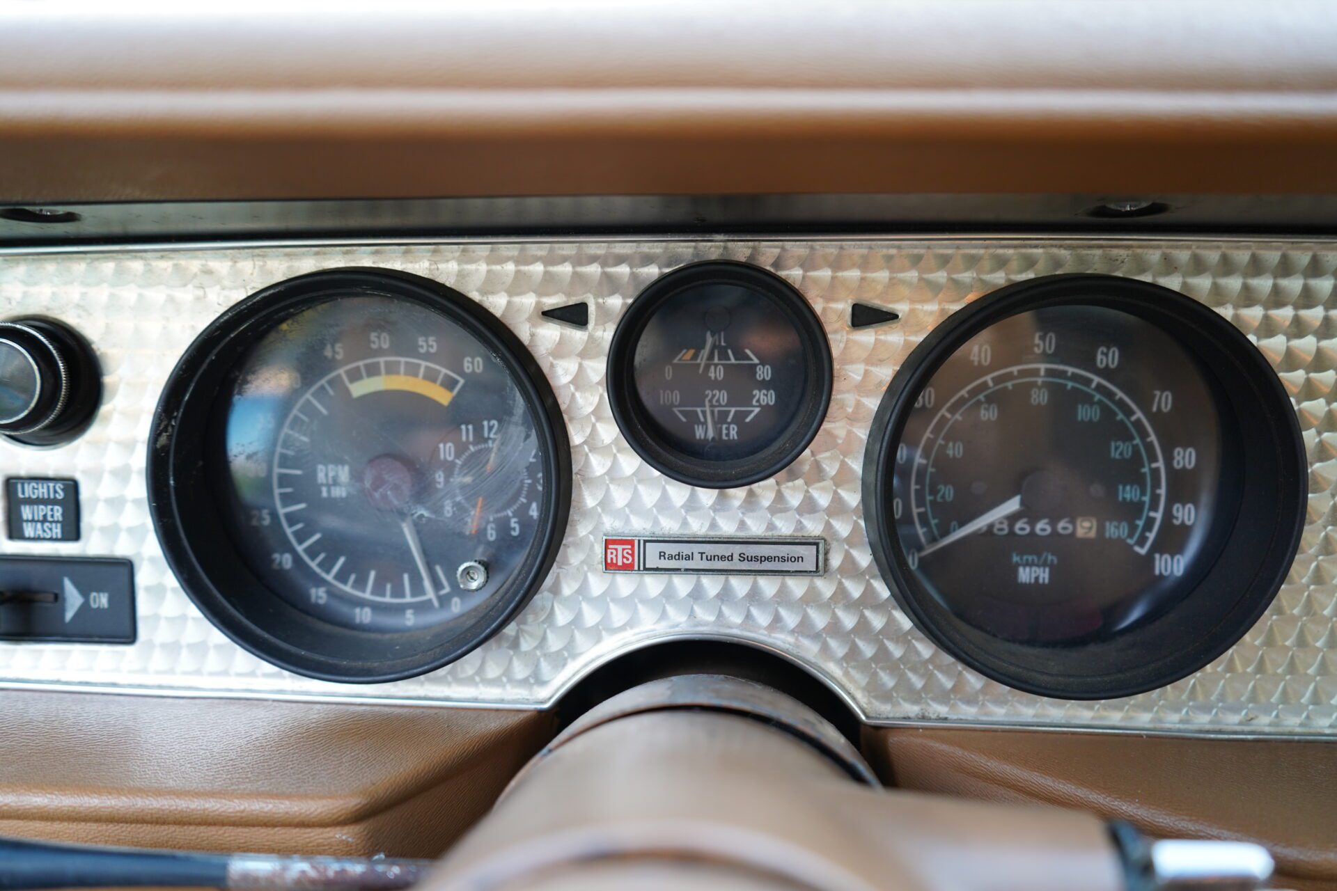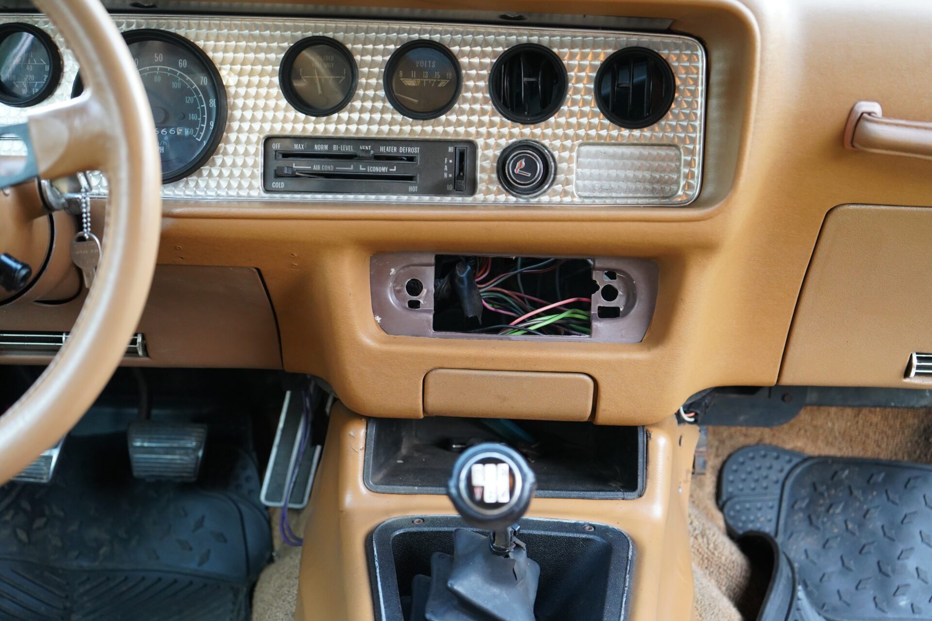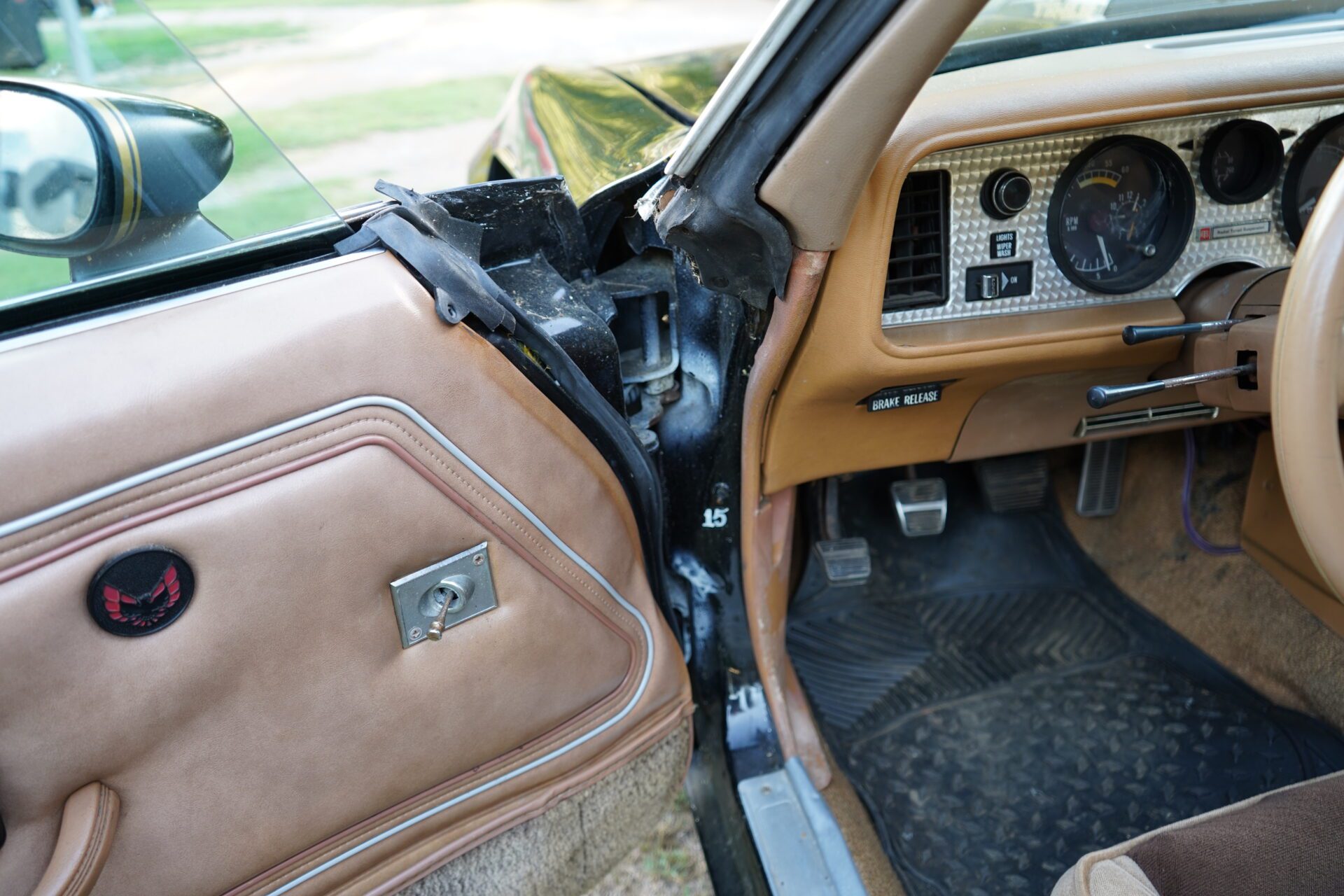 The exterior shows well from 10 feet with shiny paint and gold accents, though it does have the typical wear and patina you’d expect from a well-loved classic. Same goes for the interior — presentable and mostly original with minor aging, but totally usable and driver-ready.