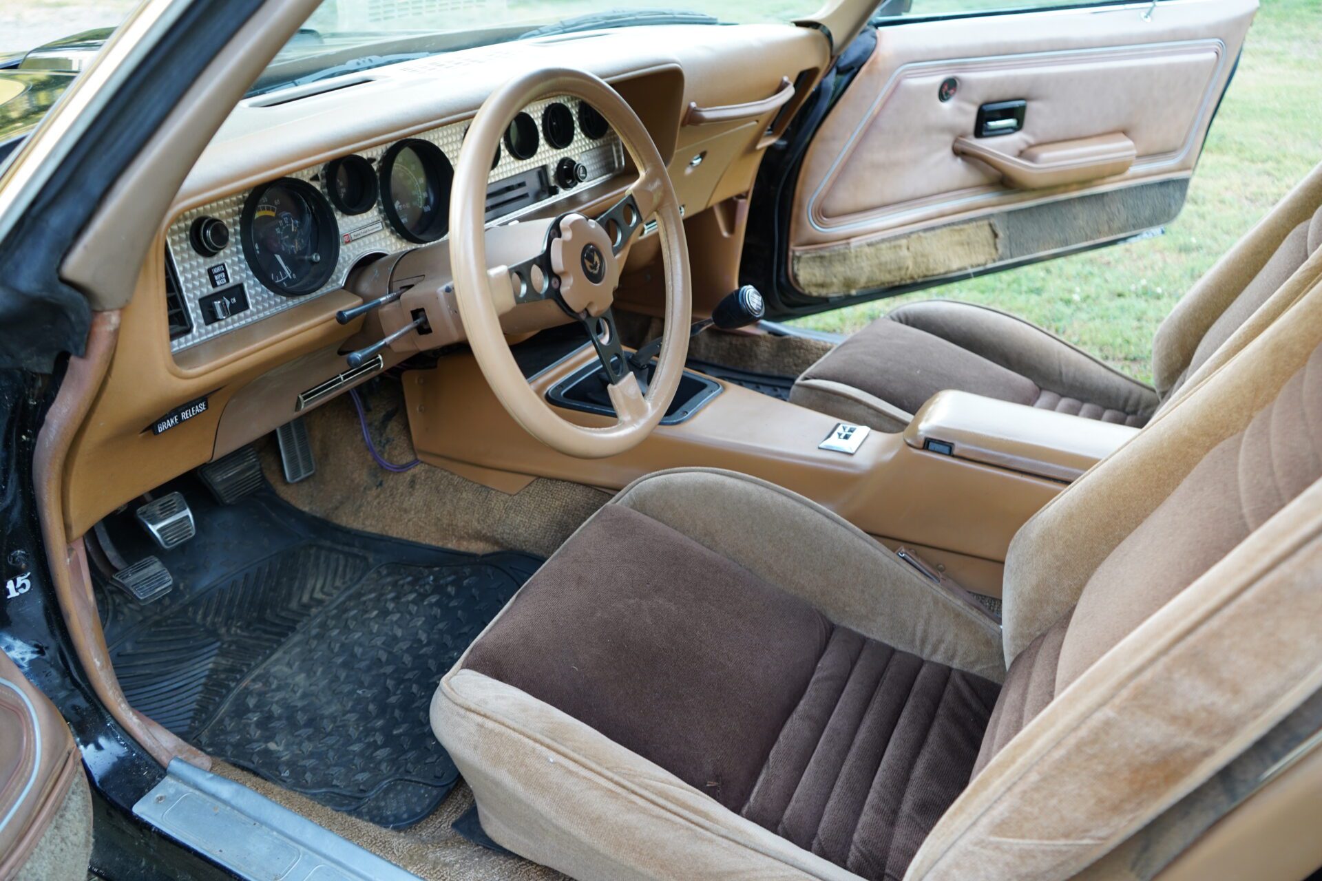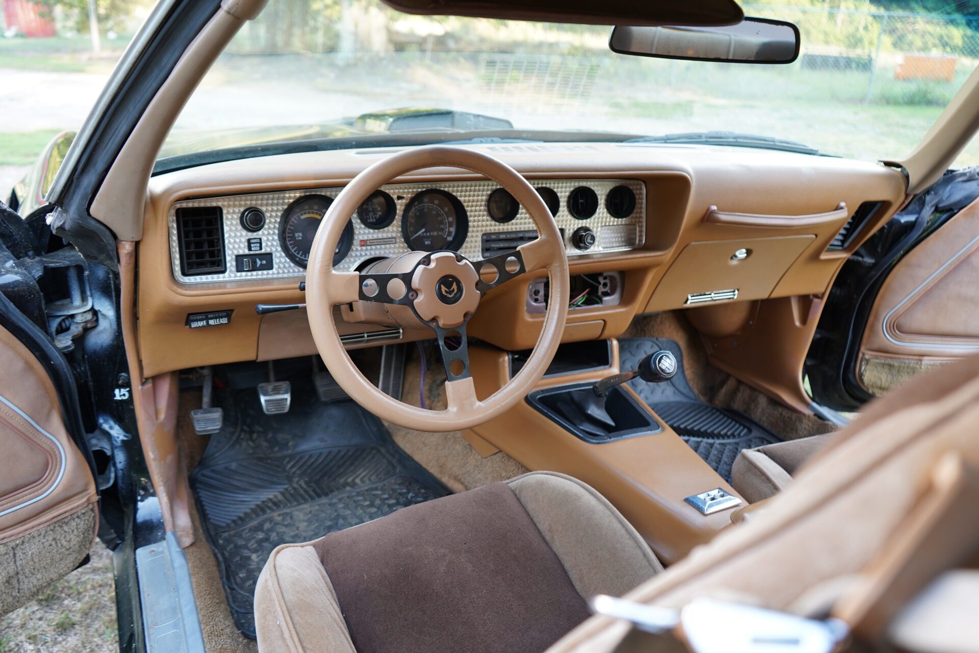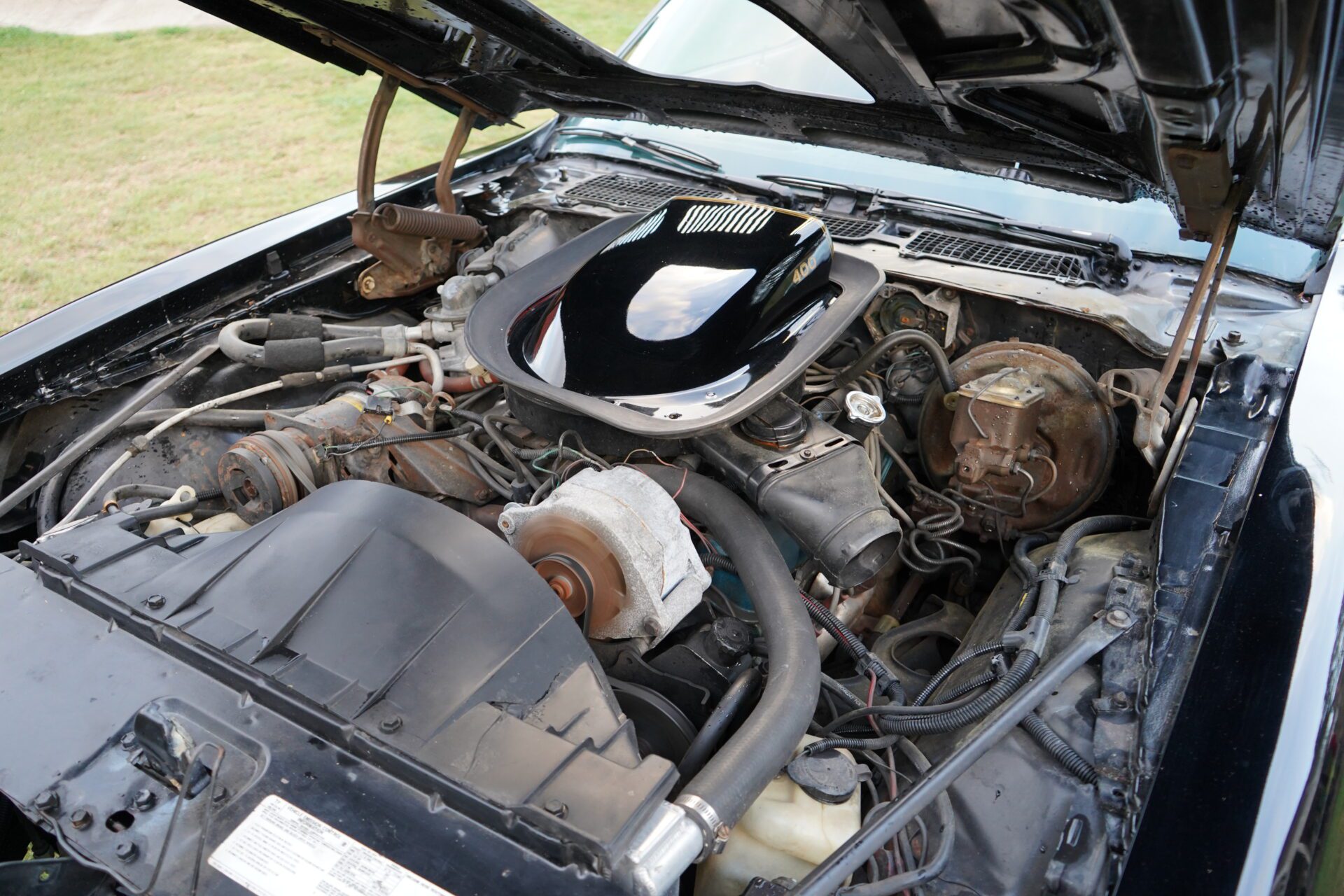 Under the shaker hood sits a true 400ci Pontiac V8, not a small-block Chevy swap — paired to a 4-speed manual transmission, this car gives you the control and grunt you expect from a Trans Am of this era. The engine starts easily, pulls strong, and makes all the right sounds through dual exhaust.