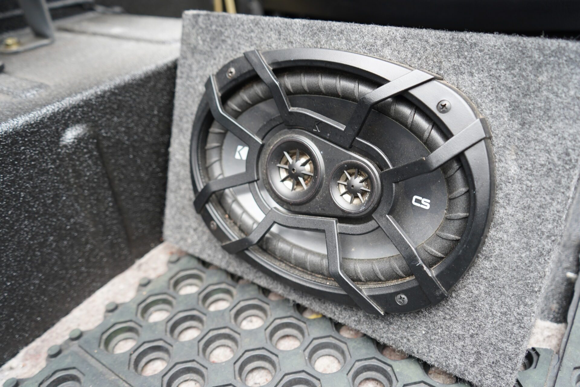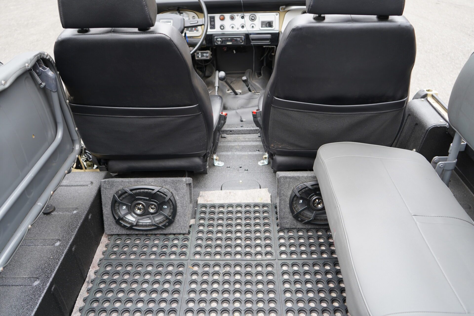 Aftermarket JVC stereo system with Kicker 6x9 rear enclosures for upgraded sound quality