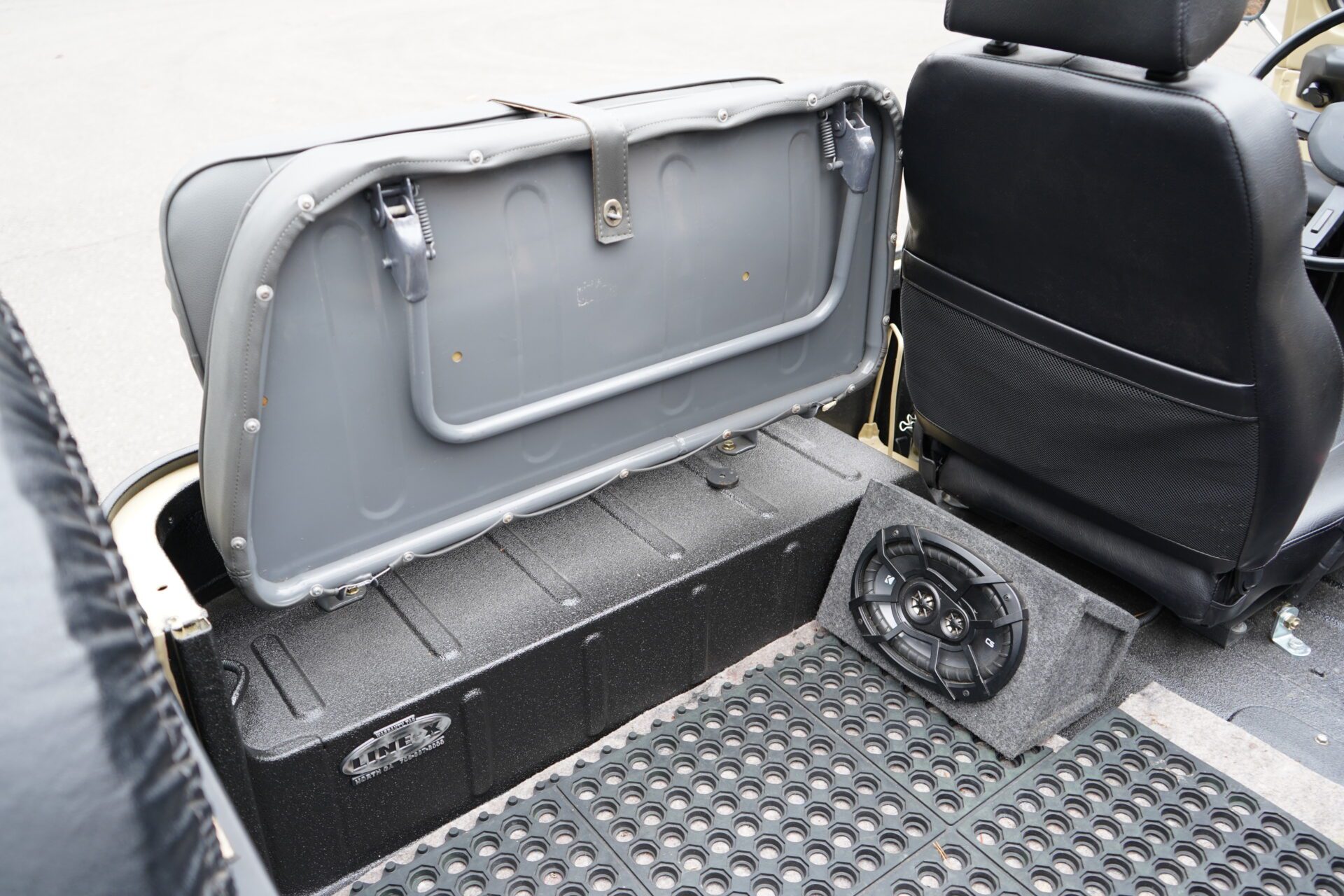 Interior flooring fully coated in Line-X, providing rugged protection, easy maintenance, and a clean, finished appearance