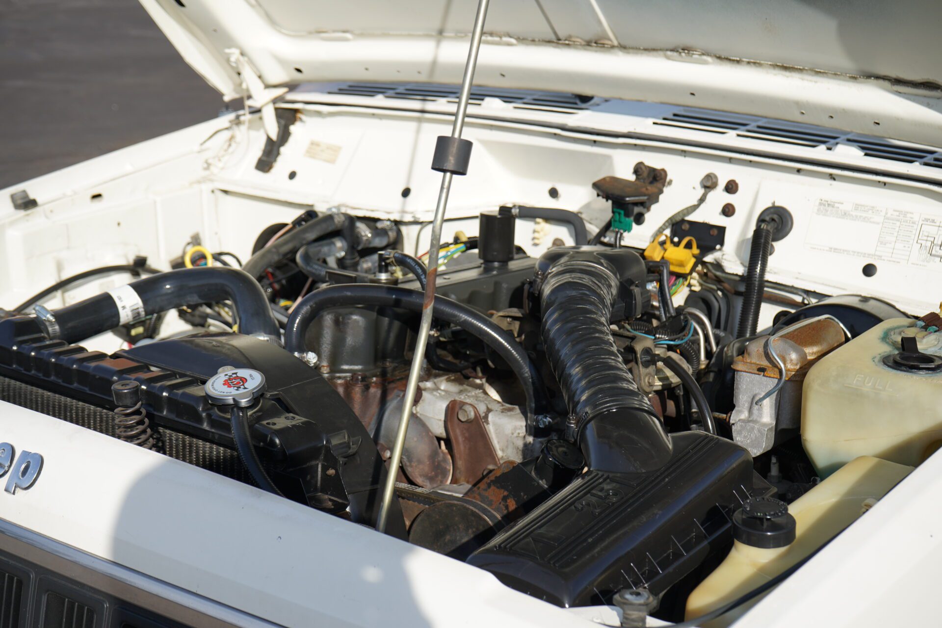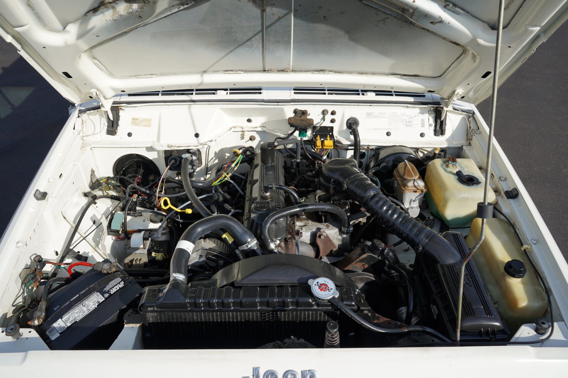 Here is a very nice survivor. Amazing original condition. It has the iron proof 2.5L Fuel injected 4 cylinder. Manual 5 speed transmission with 4 wheel drive. Great clean slate to do what ever you want to it or just drive and have fun. Runs and drives out like it should. Paint is a bit faded. but interior is 9 out of 10. Several extra parts come with the sale. Great little Jeep. No A/C.