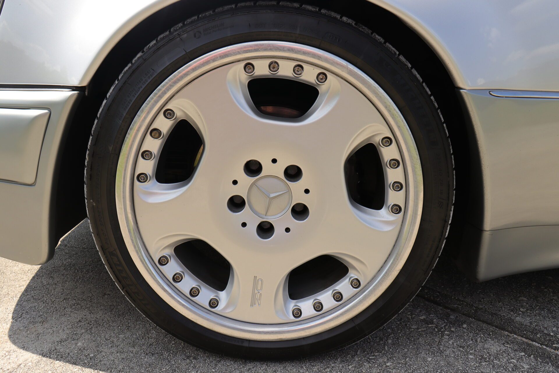 This 500e finished in Brilliant silver and has had the rear arches further widened to give the car an even crazier stance from factory. The car has been lowered via H&R lowering springs and rides very smooth. The OZ Opera 2 piece wheels fit the car very nicely and have been recently wrapped in Tires on all 4 wheels. A facelift conversion has been done on the front end to give it a more aggressive and modern appearance. On the trunk lid a 3 piece Hammer style duckbill has been added and really rounds out the exterior very nicely. Body lines are very straight there is no major dents dings or scratches to note.