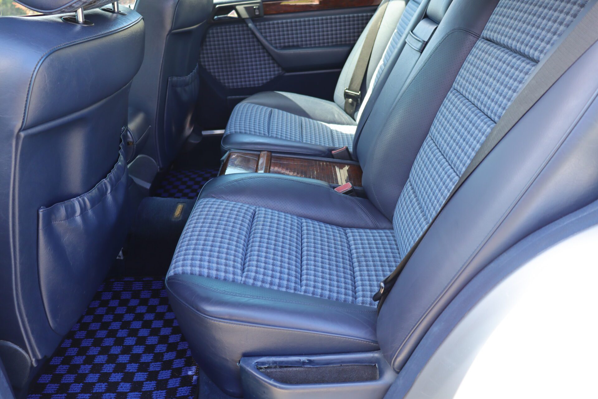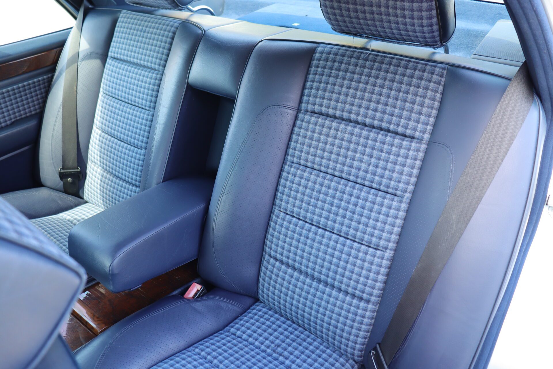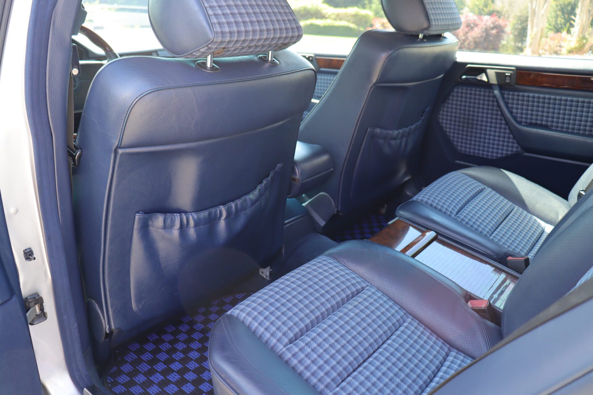 Interior is one of the rarest you can find on these cars. Code for the interior is 072 which is fabric blue inserts with leather perforated bolsters, and it looks absolutely phenomenal. The seats show like new with practically no bolster wear. These seats also happen to be heated which was pretty advanced for the year. Dash is in great condition no lifting or warping or cracks. Original radio has been upgraded to a more modern head unit with blue tooth. Rear seats are as clean as the front seats. The headliner is in excellent shape as the car has never been smoked in and the headliner also is not sagging. The sunroof and power windows all function as they should. Car has functional AC and functional heater. All the glass looks good no chips or cracks.