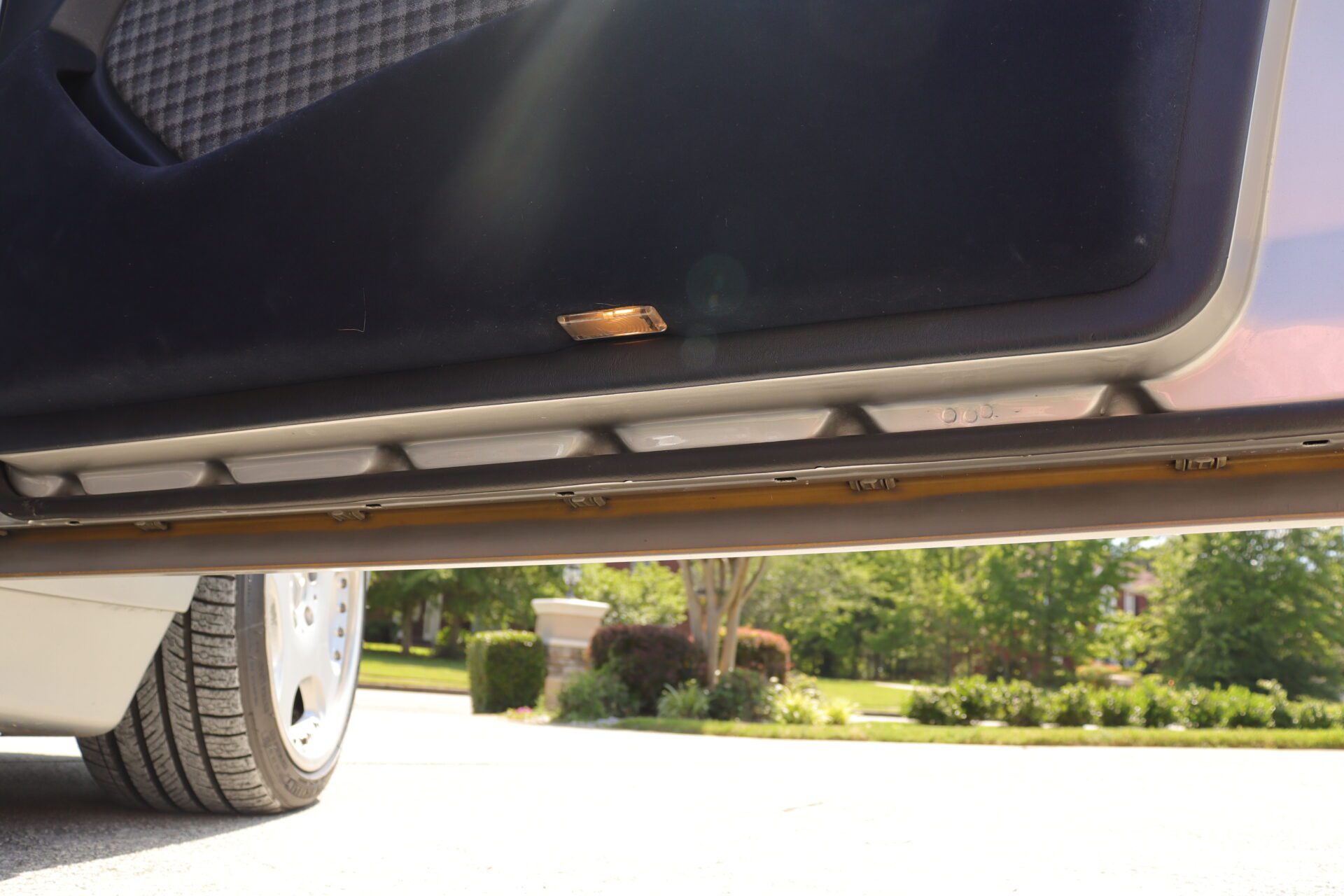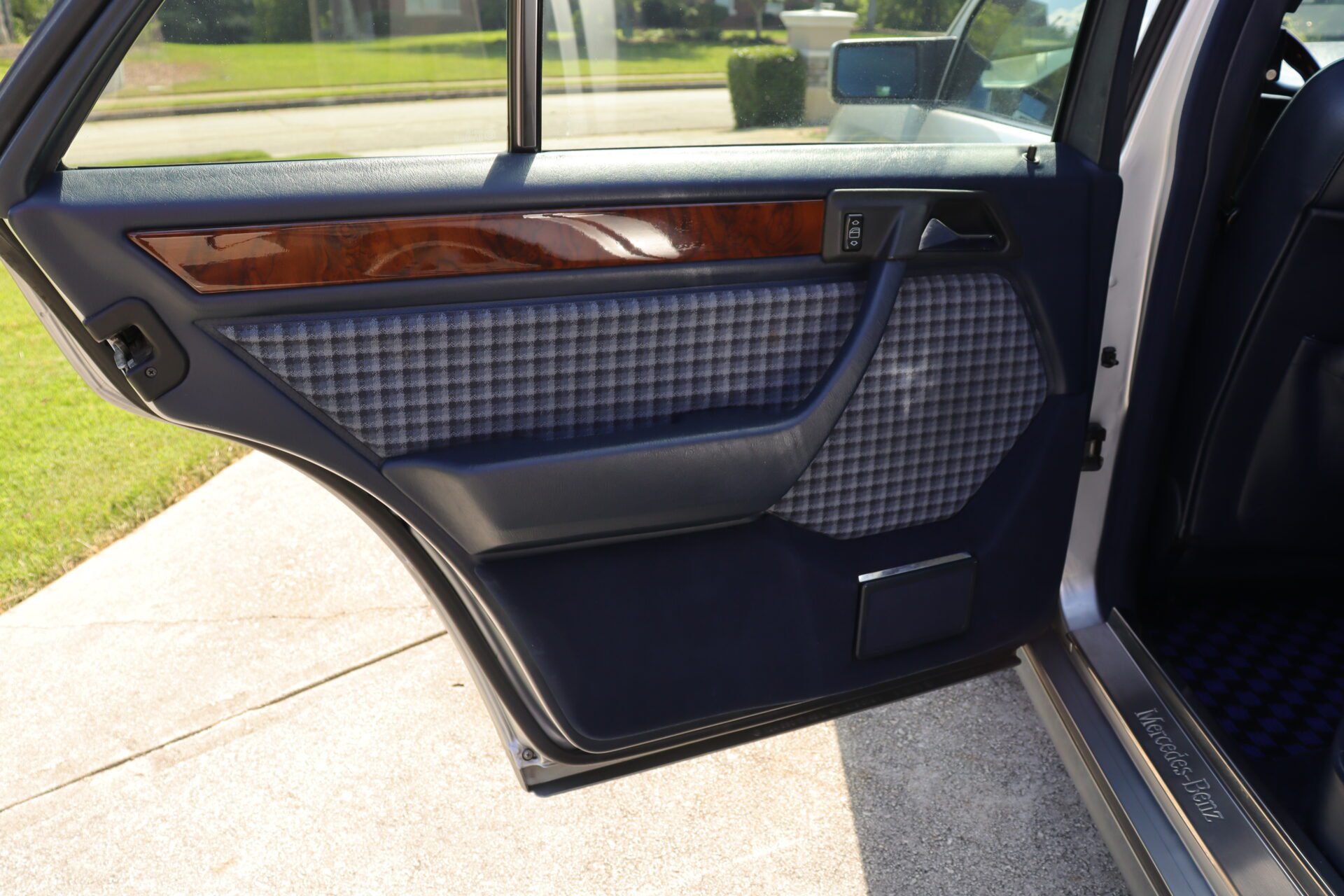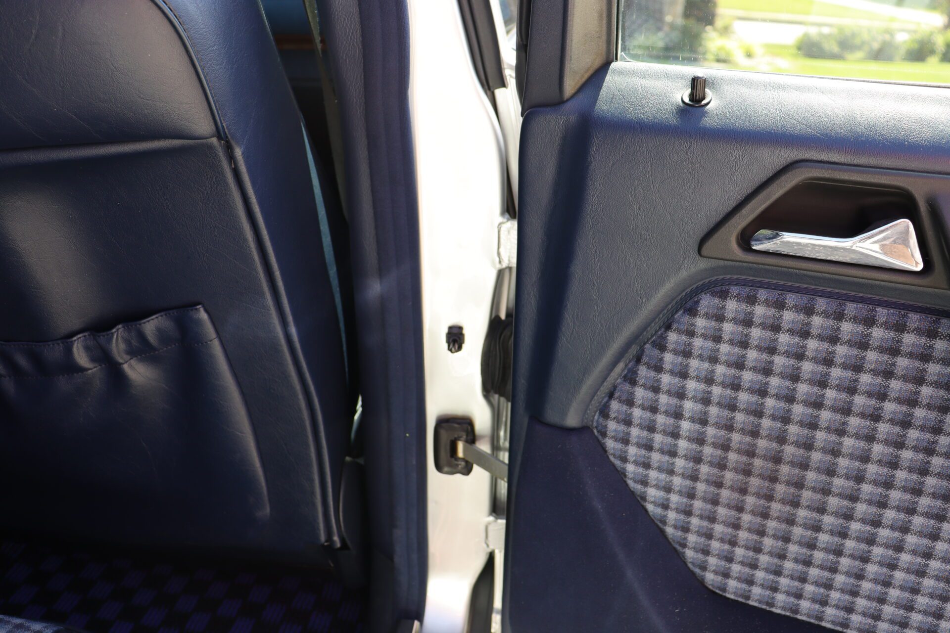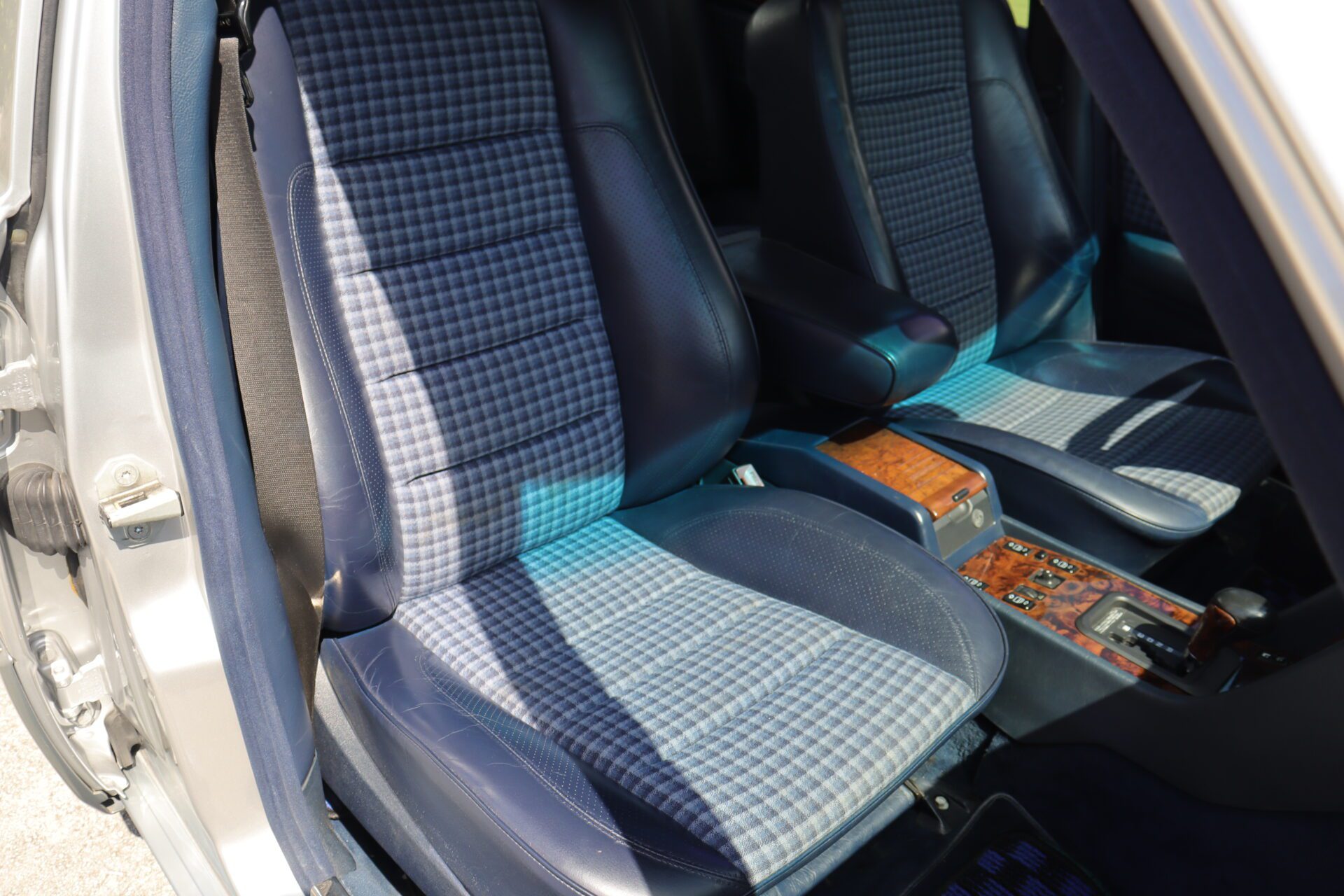 Interior is one of the rarest you can find on these cars. Code for the interior is 072 which is fabric blue inserts with leather perforated bolsters, and it looks absolutely phenomenal. The seats show like new with practically no bolster wear. These seats also happen to be heated which was pretty advanced for the year. Dash is in great condition no lifting or warping or cracks. Original radio has been upgraded to a more modern head unit with blue tooth. Rear seats are as clean as the front seats. The headliner is in excellent shape as the car has never been smoked in and the headliner also is not sagging. The sunroof and power windows all function as they should. Car has functional AC and functional heater. All the glass looks good no chips or cracks.